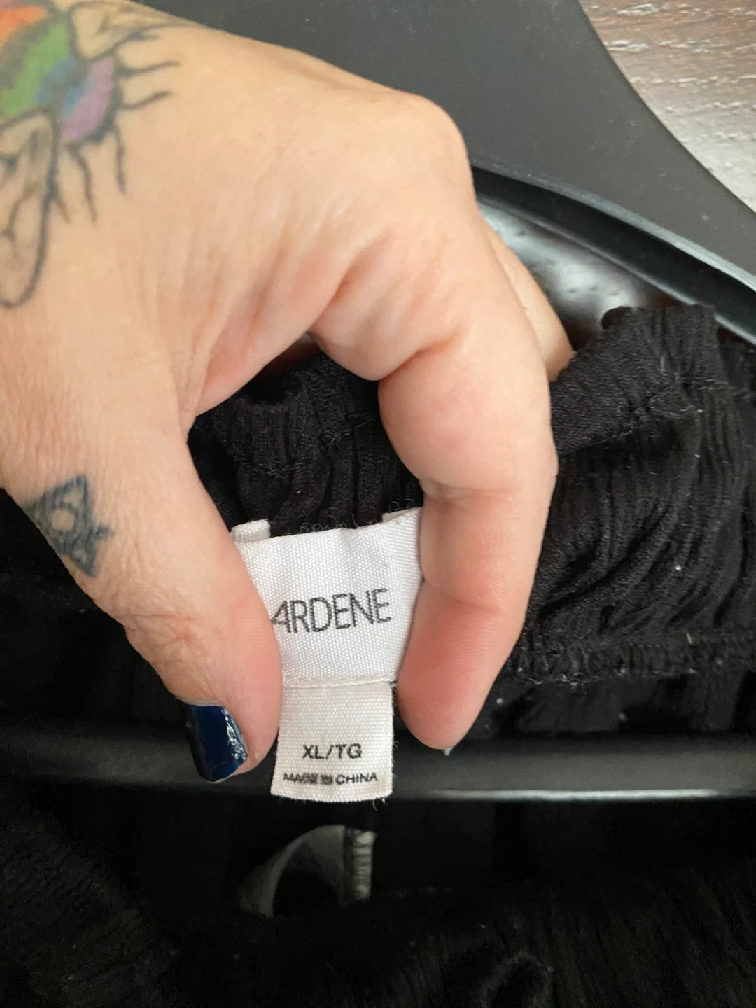 Selling a pair of Ardene black shorts in size XL! They're made of 99% polyester and 1% elastane, making them super comfy. Perfect for lounging around or a casual outing