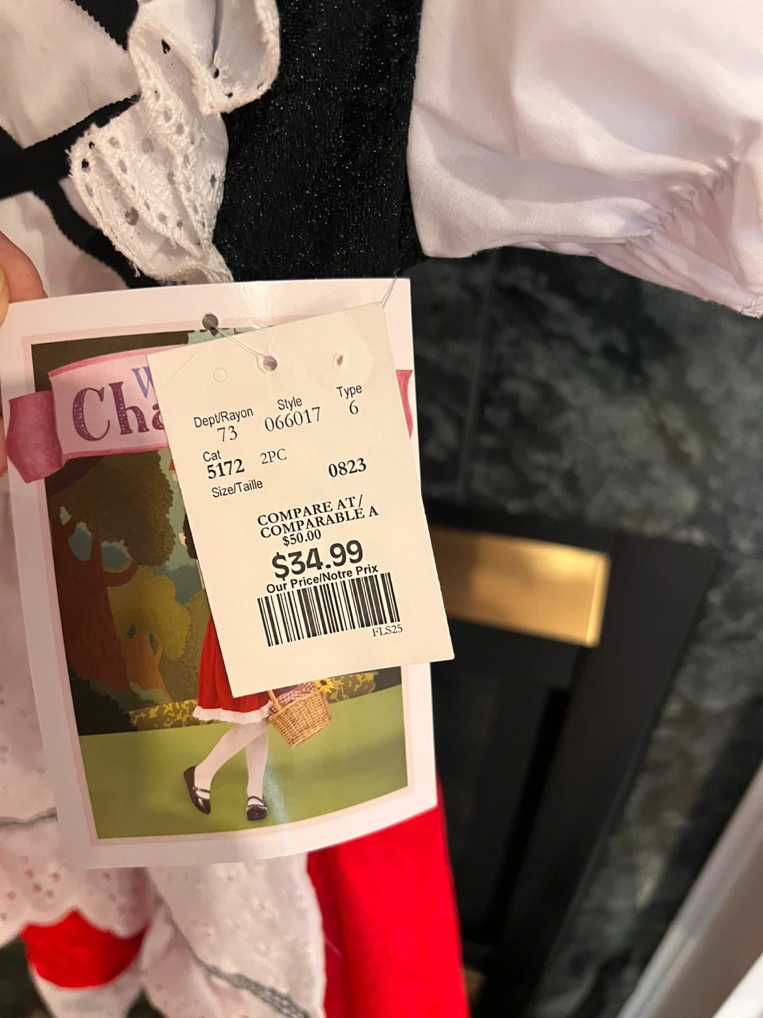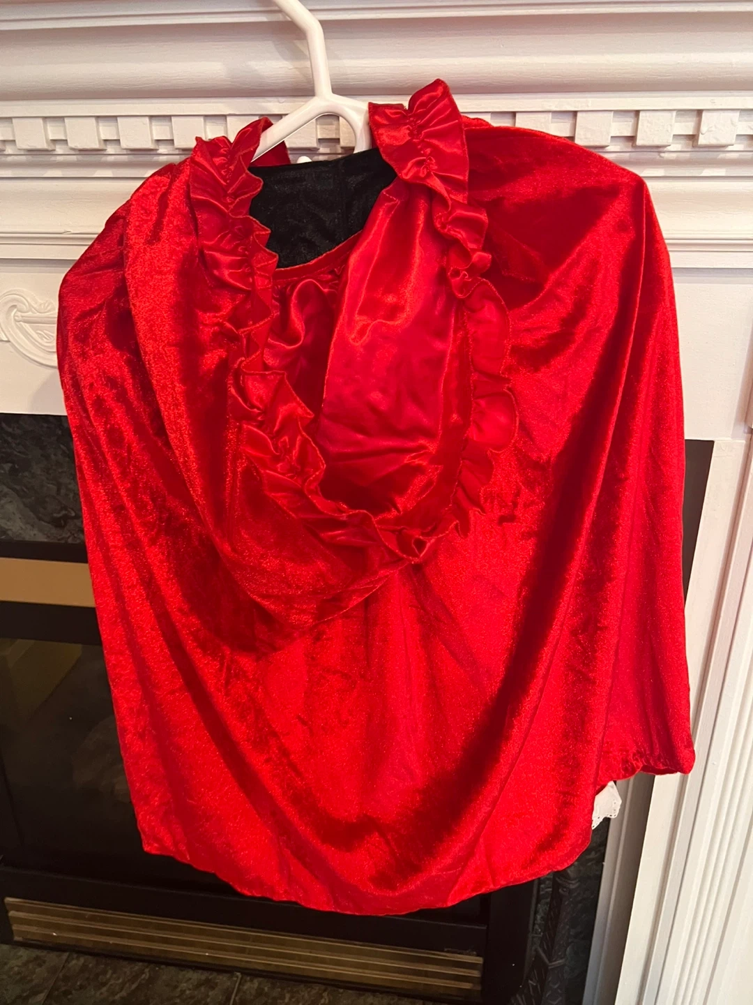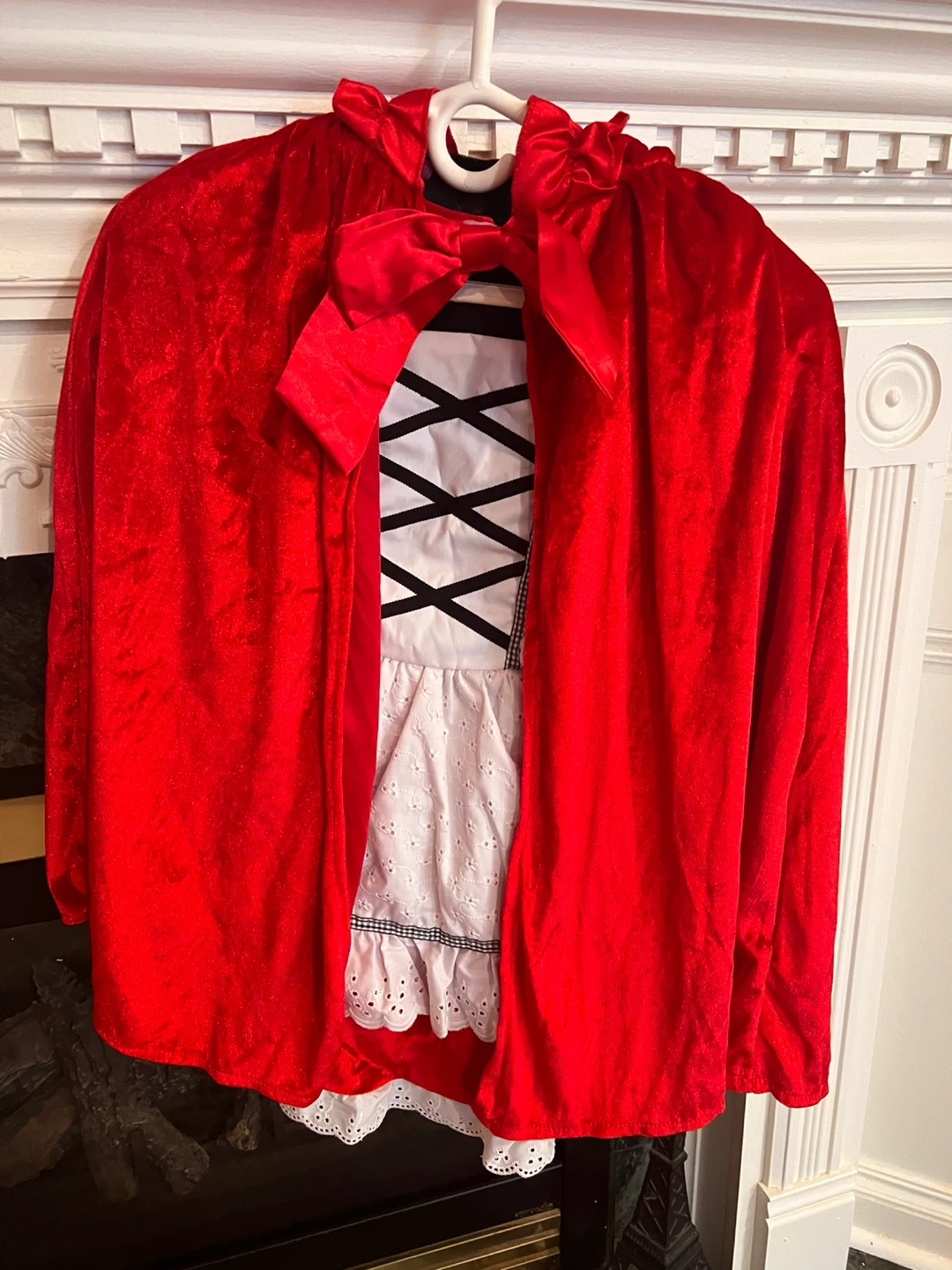 15A cute Little Red Riding Hood costume for kids! This costume includes the dress and the red cape. The size is 5/6
