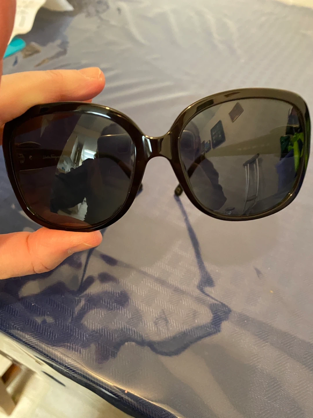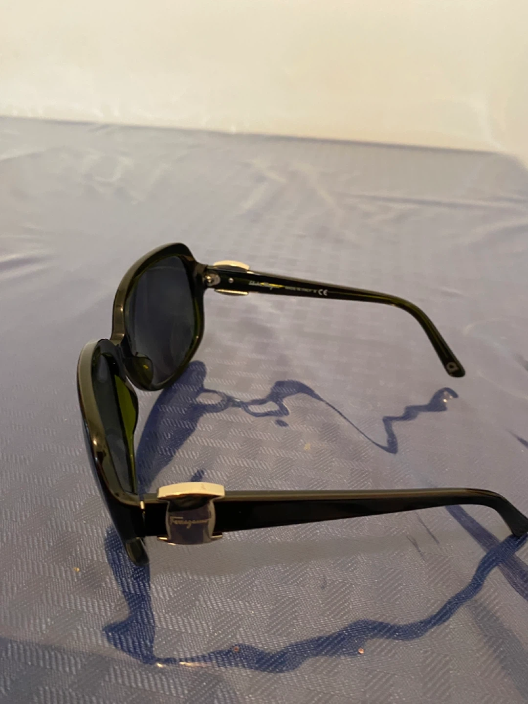 Selling a pair of Salvatore Ferragamo sunglasses! They are black with a gold accent on the side. These sunglasses are in great condition and ready for a new owner. No scratches and green frame inside, black outside.