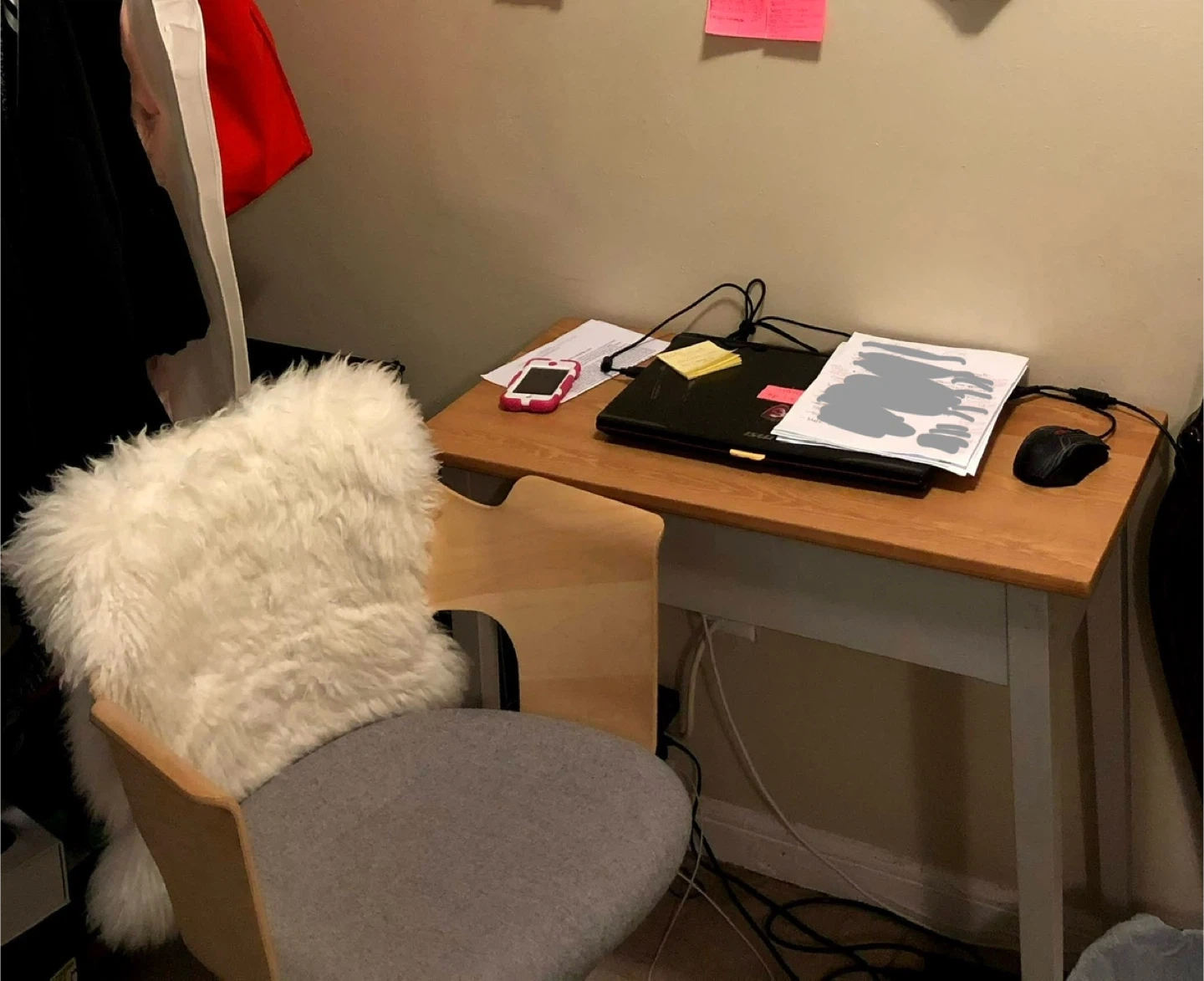 Selling a wooden desk in good condition from IKEA. It's a great size for a small space or home office. Perfect for studying or working from home. I don’t have the dimensions just yet - I will measure that later tomorrow, but I put the second picture including stuff on it for perspective comparison. It has a drawer on each side - one that opens down and one that slides out.