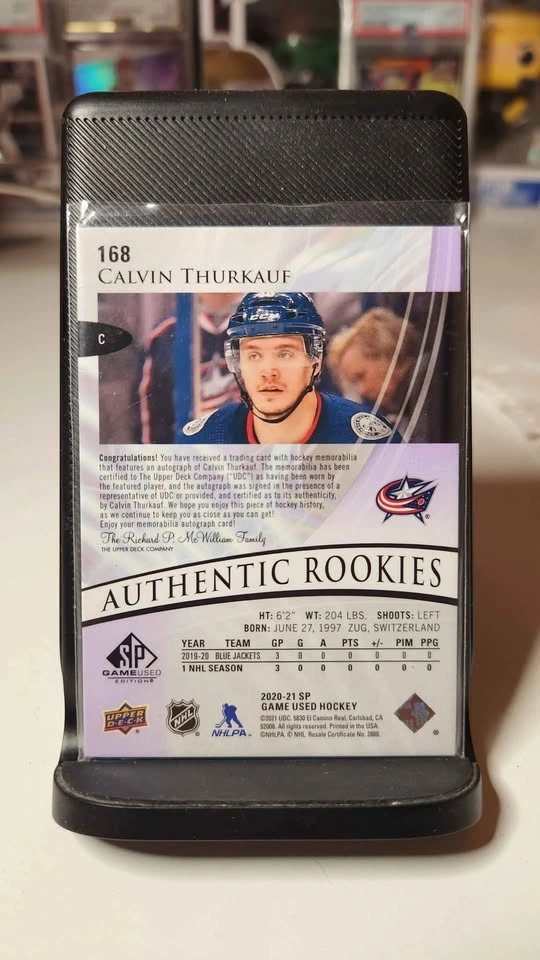 65Beautiful 2020-21 Upper Deck SP Game Used Authentic Rookies card of Calvin Thurkauf, serial numbered 39/65. Harder-to-find low-numbered rookie card β great addition for Blue Jackets fans or serious collectors! π Condition: Near Mint / Mint π Set: 2020-21 SP Game Used π₯ Serial Numbered: 39/65 π° Asking: $8 (open to offers) Item Located West Hamilton Mountain near Mohawk Rd and Rice Ave