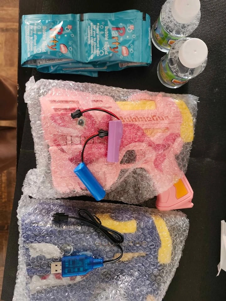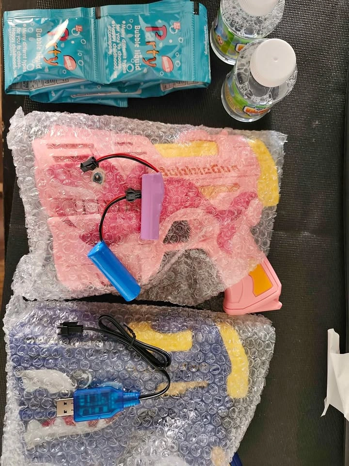 18Jasny 2 Pack Bubble Guns for Kids, Rechargeable LED Light Up Dinosaur Bubbles Machine Blower with 2 Bottles Refill Solution for kids