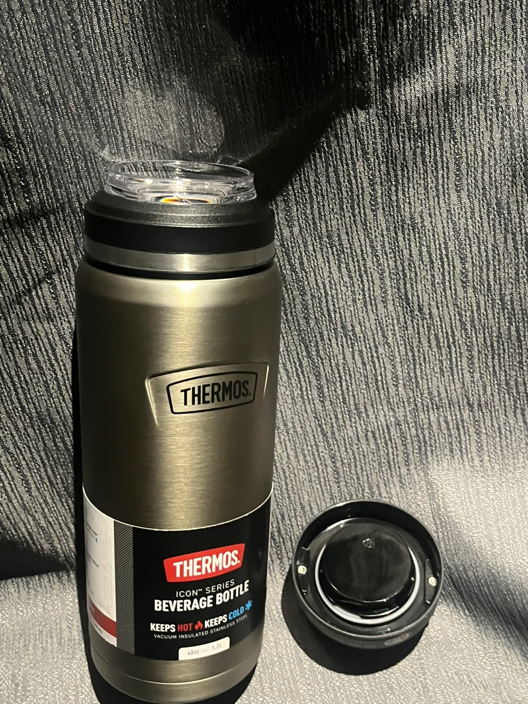 1000+Selling a Thermos Icon Series Beverage Bottle. It keeps hot and cold drinks at the perfect temperature. It has a 1.2L capacity.