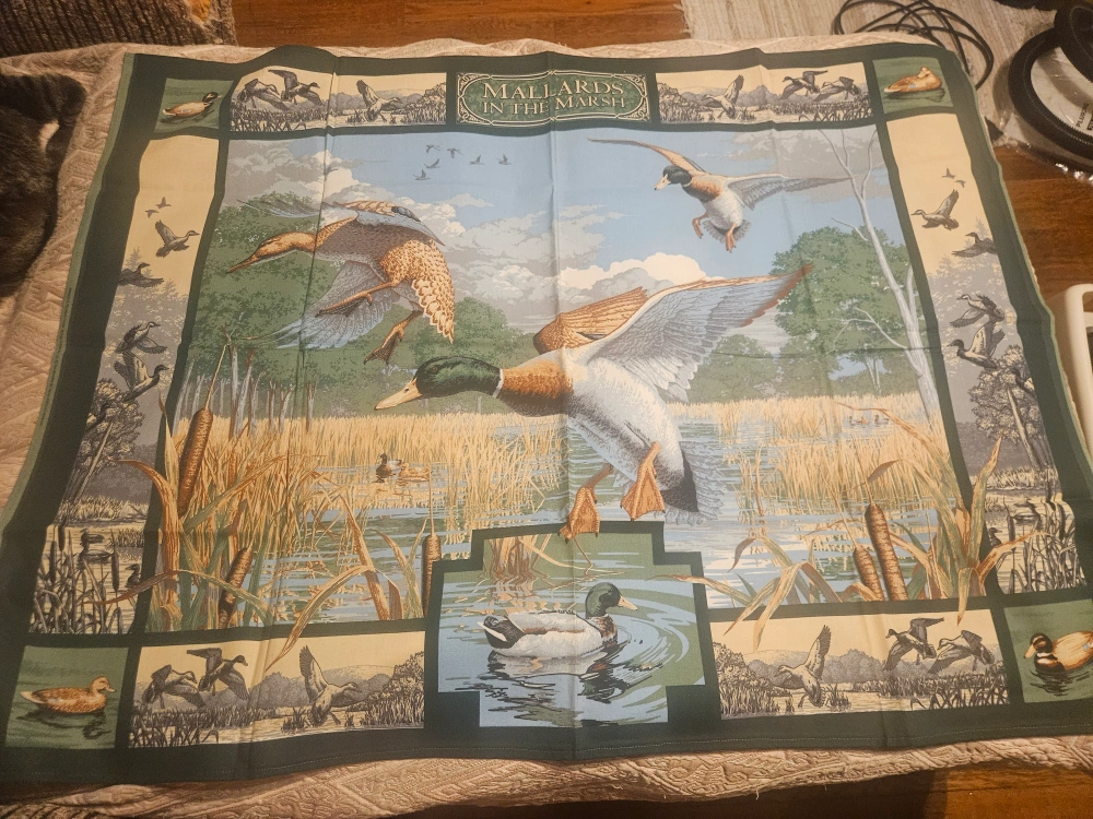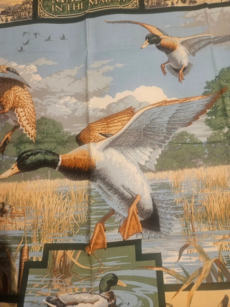 wild birds Mallard in the Marshall Ducks Flaying on the 100% cotton panel for quilts, craft,wall hanging style or table cover. three pcs.price separate.