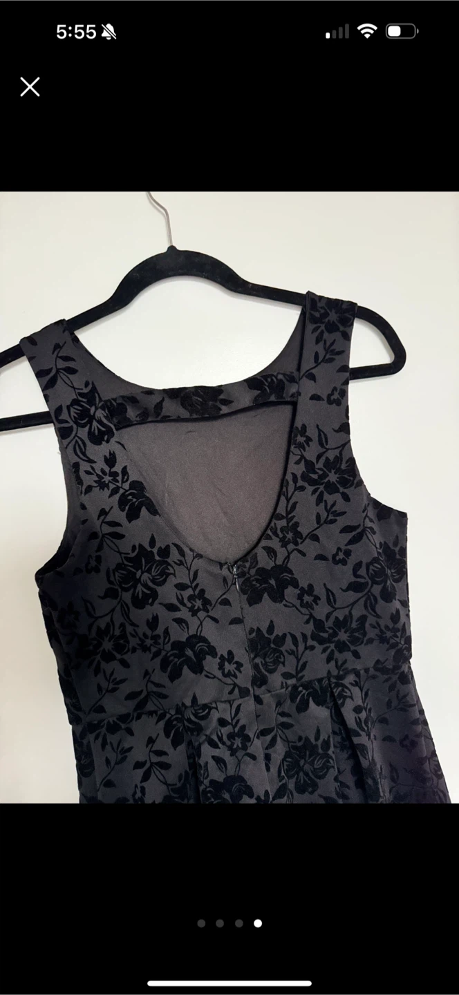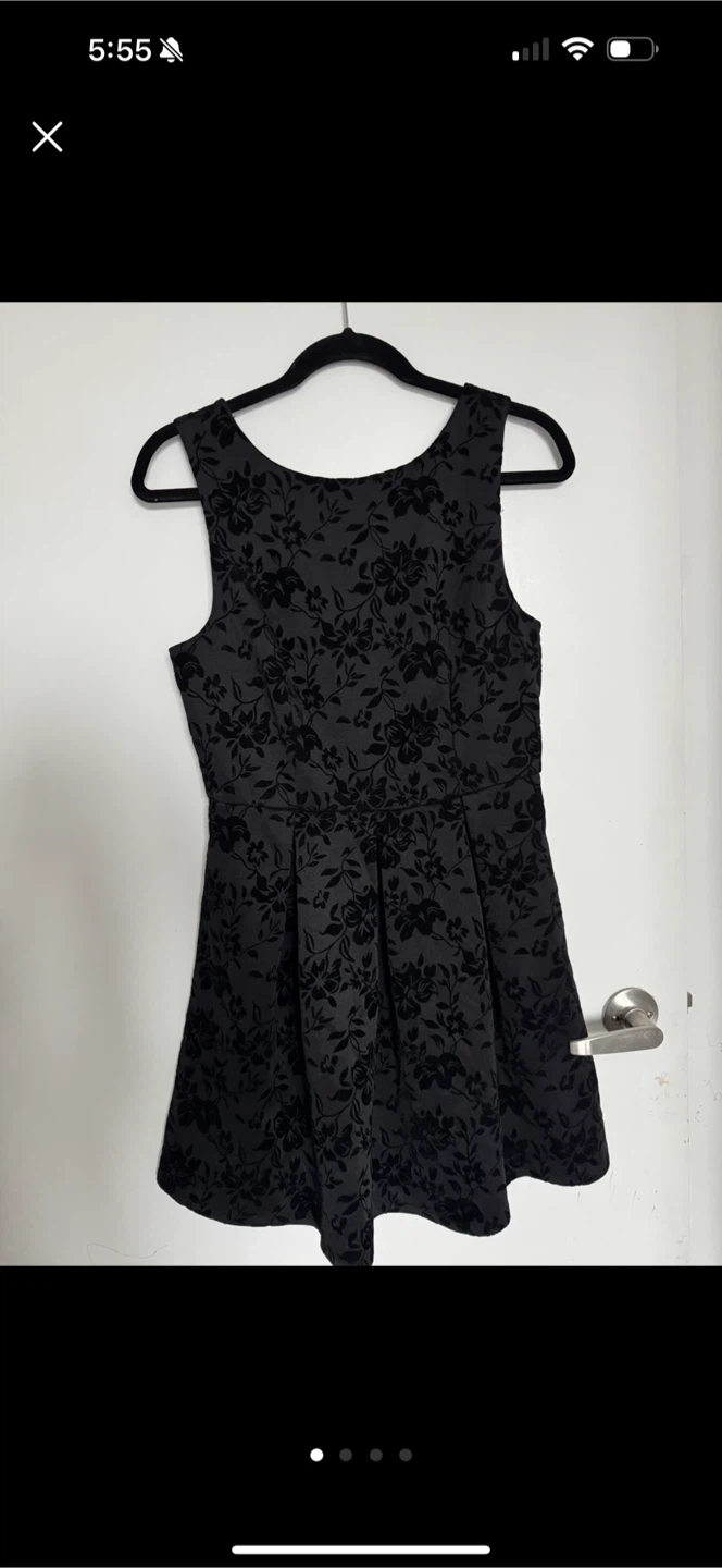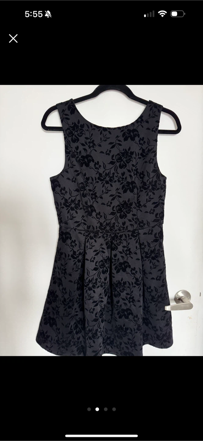 Selling a cute black dress with a floral pattern! It's in great condition and would be a lovely addition to your wardrobe! The dress has a classic and elegant look.