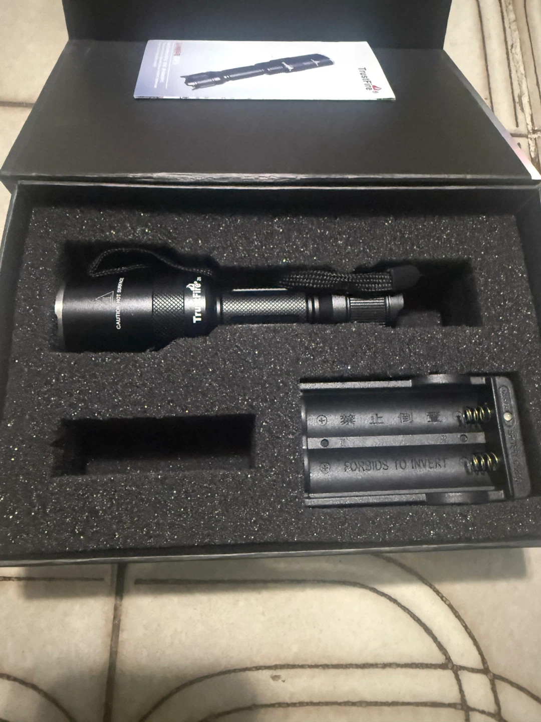 Selling a TrustFire flashlight that's in great condition! It comes with its original box and a charger, so you'll have everything you need to get started. Perfect for camping, hiking, patrolling, or just keeping in your car for emergencies.