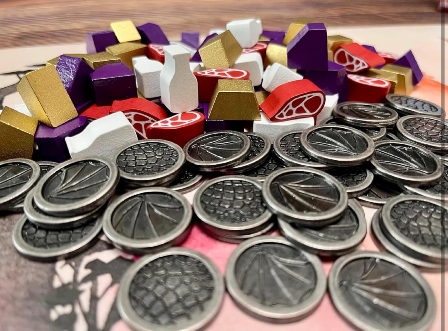 Stonemaier Wyrmspan Upgraded Metal Coins and Wooden Resources