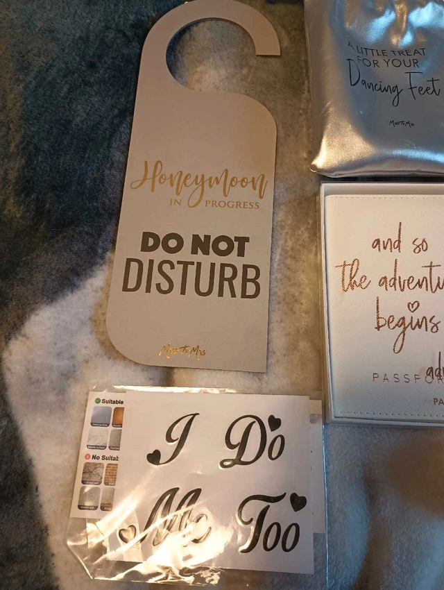 - door sign (honeymoon in progress/ just married, don't even think about knocking)