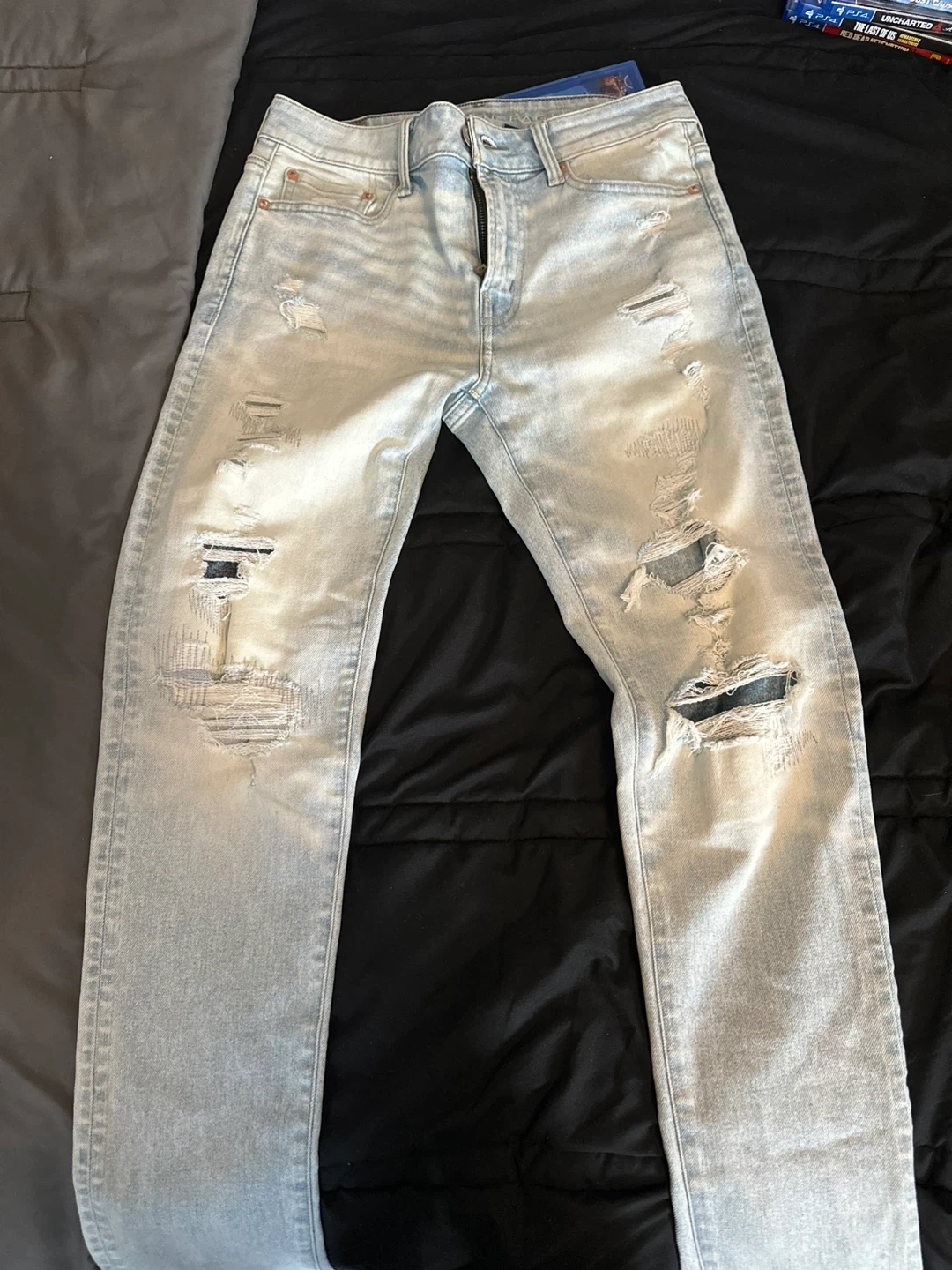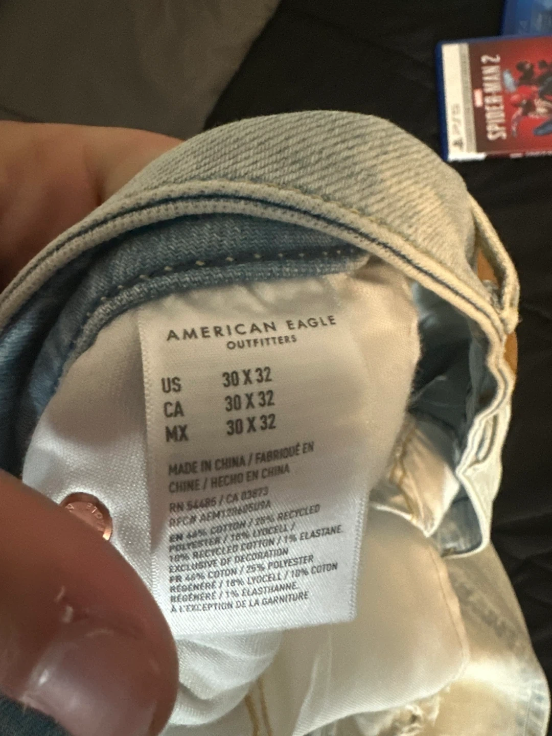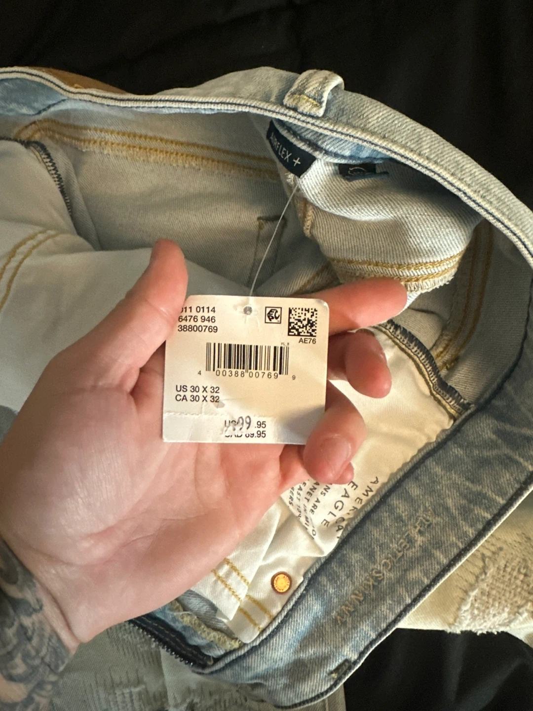 15Selling a pair of American Eagle skinny jeans in size 30x32. They're in good condition and ready for a new home. The tag shows they were originally $69.95, new never worn with tags