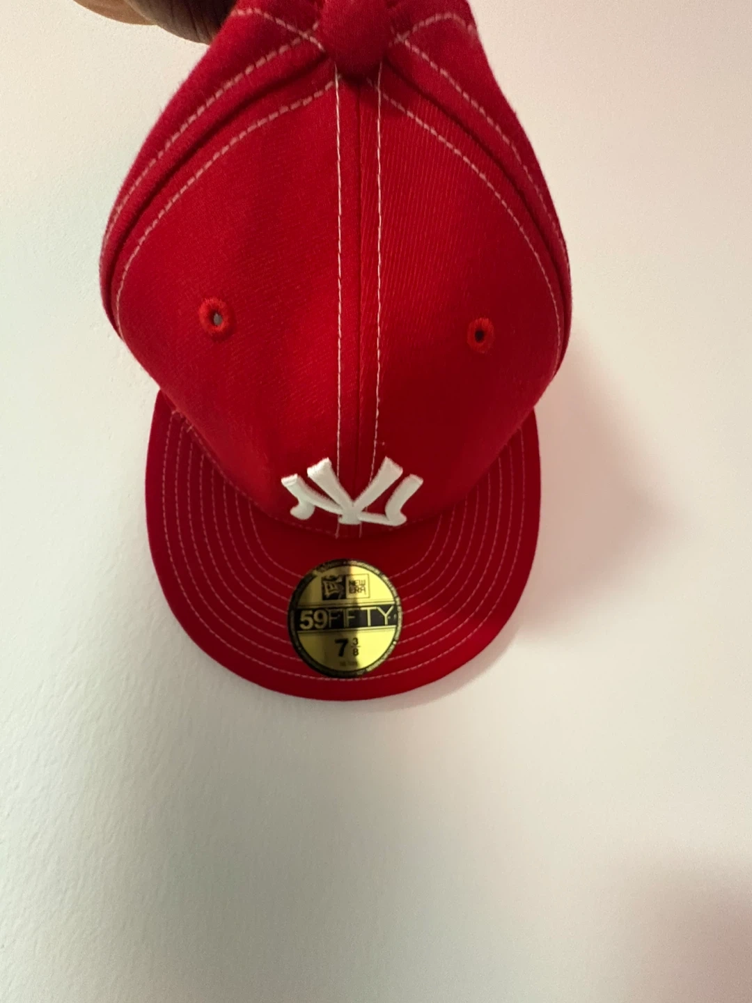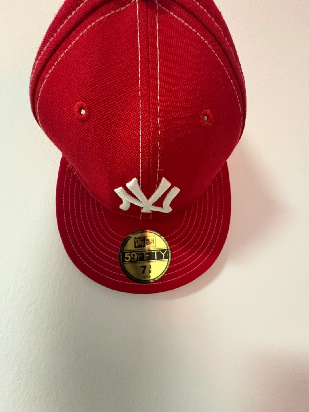 Selling a New Era NY Yankees 59FIFTY fitted cap in red. It's a size 7 1/8. Perfect for showing off your team pride!