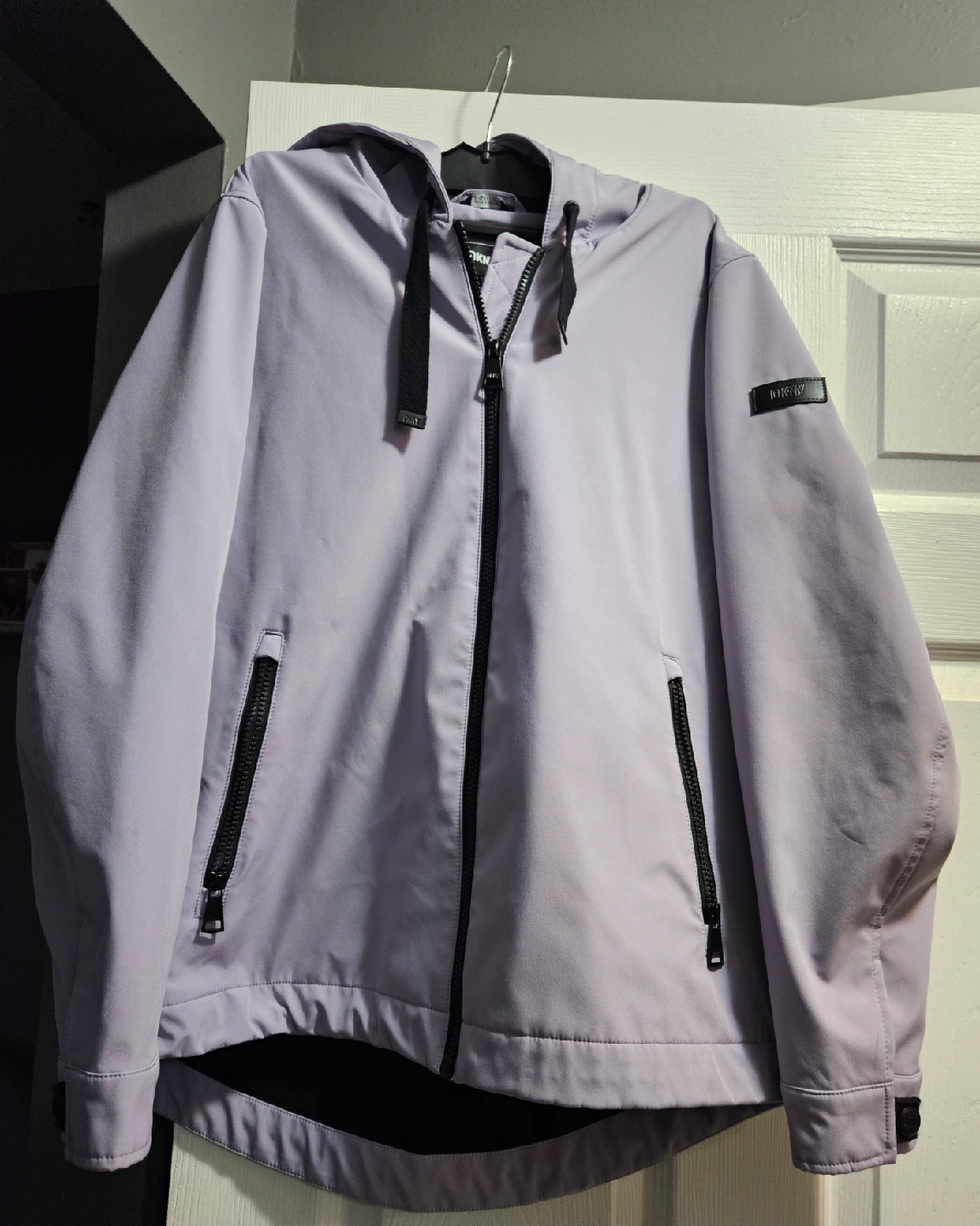 Selling a DKNY jacket in a lovely lavender colour. It's a size medium and in great condition. Perfect for spring or fall! Non smoker.