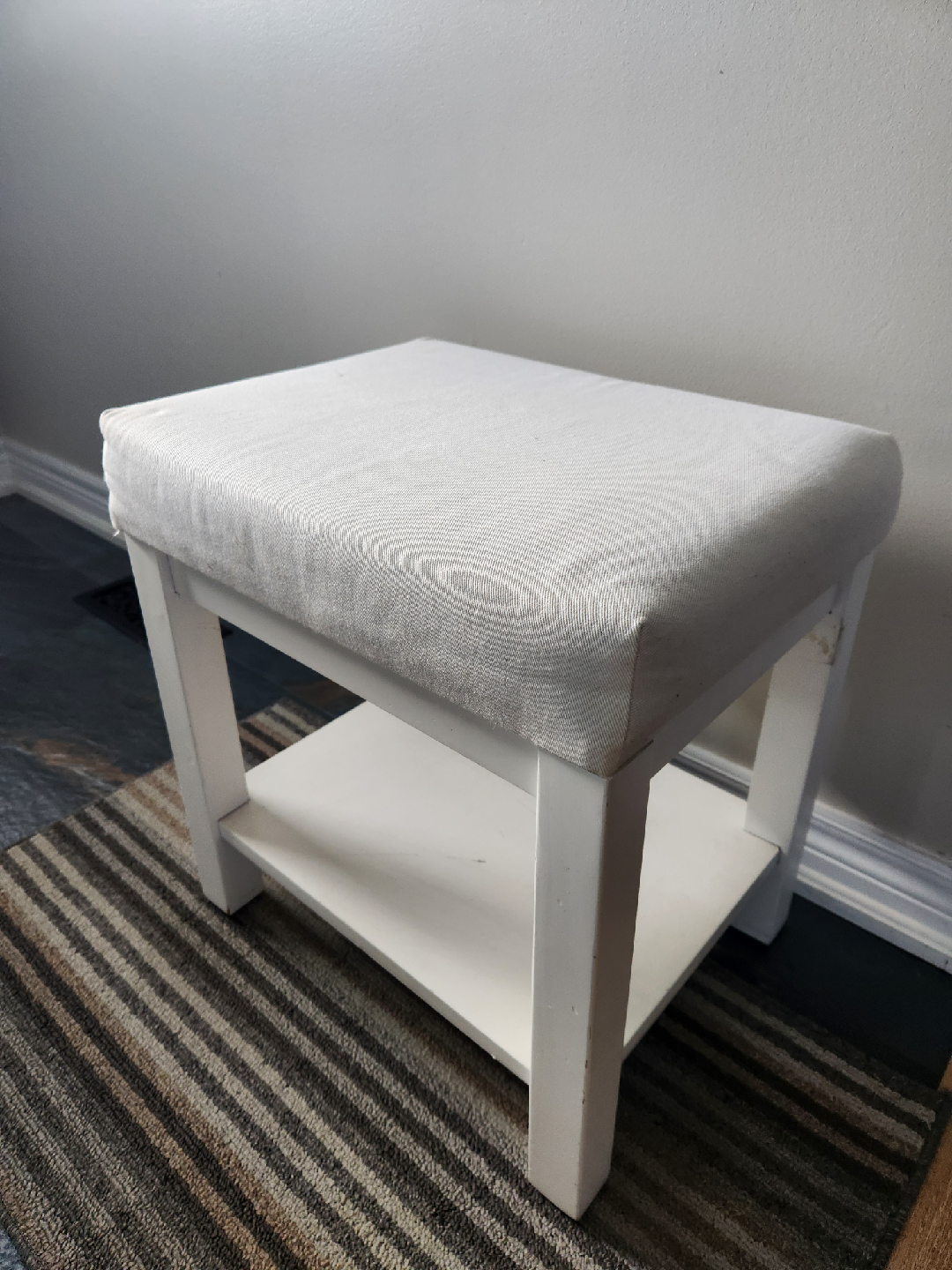 Buy & SellWhite Entryway StoolWhite Entryway Stool$20Compact cushioned stool with lower shelfConditionGoodDimensions19" high x 18" x 14" WHERE TO MEETCheck LocationView MapSELLER589218Willmott543 reviews1 chats·0 favorites·20 viewsSEND CHAT TO SELLERHi 589218! I’m interested in your listing.Hi 589218! I’m interested in your listing.Get the Karrot app to chatSign In to chat