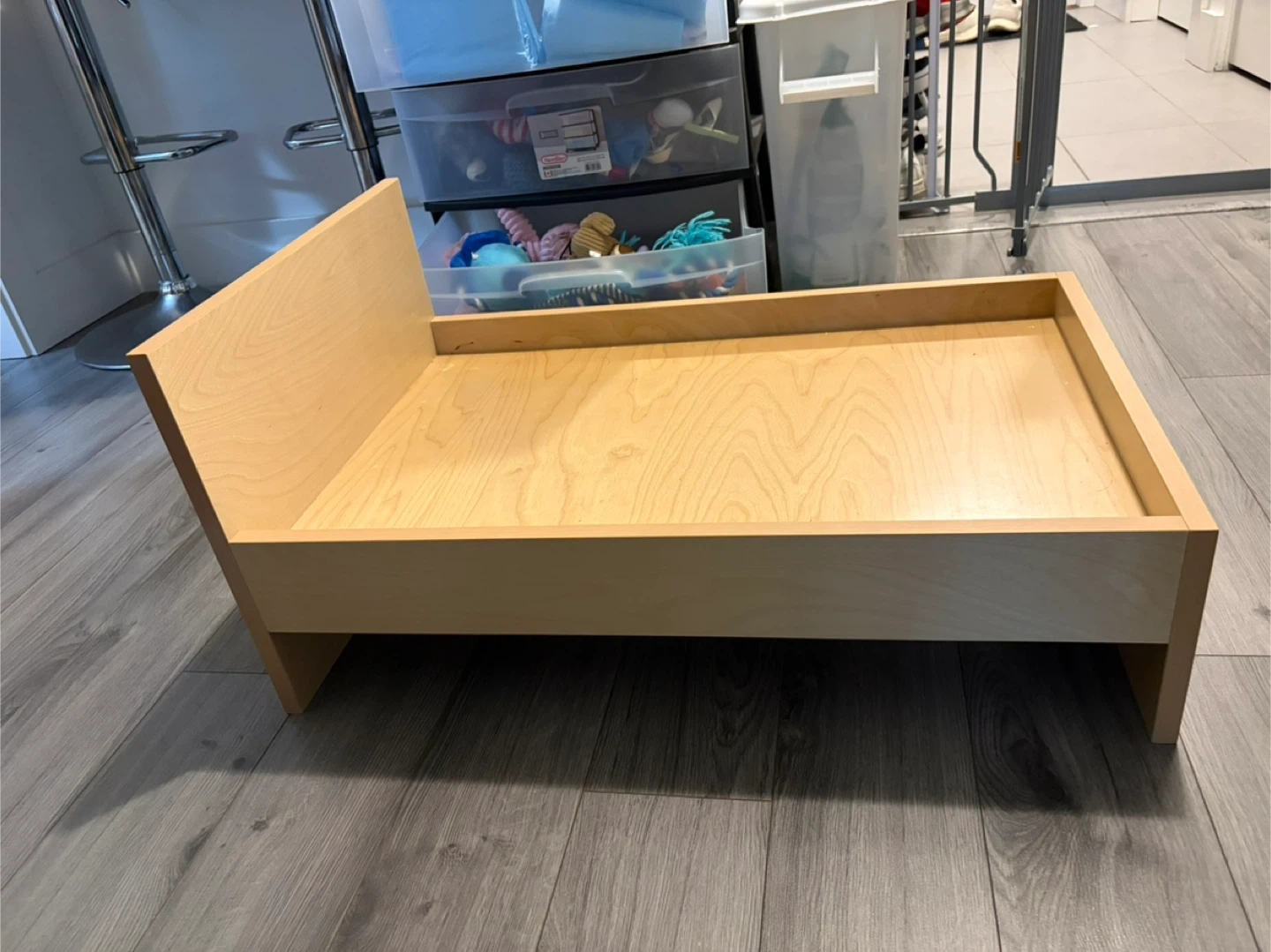 Handmade wooden dog bed. Barely used, excellent condition.
