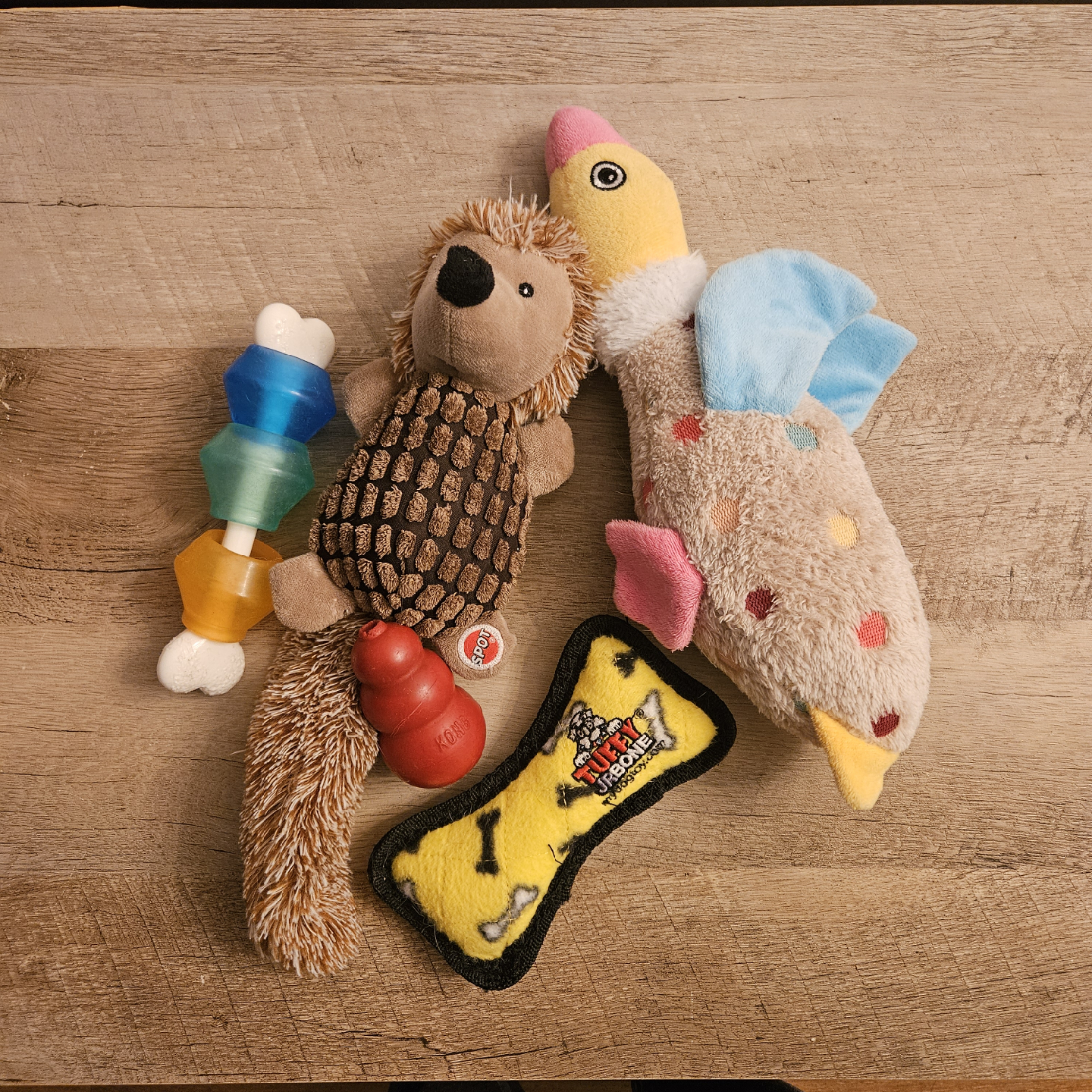 Tuffy Bone (yellow one) is basically brand new!