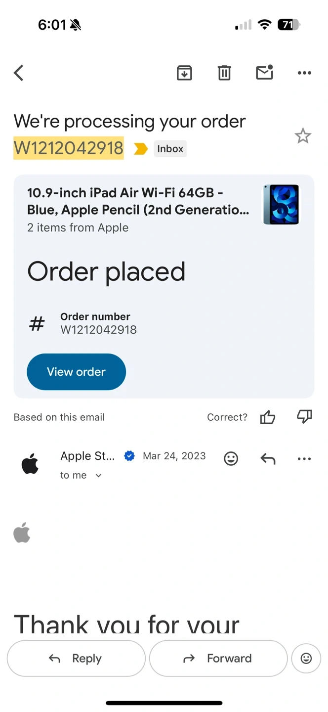 This iPad was purchased new from the Apple Store in 2023 (proof of purchase attached) and barely used since.