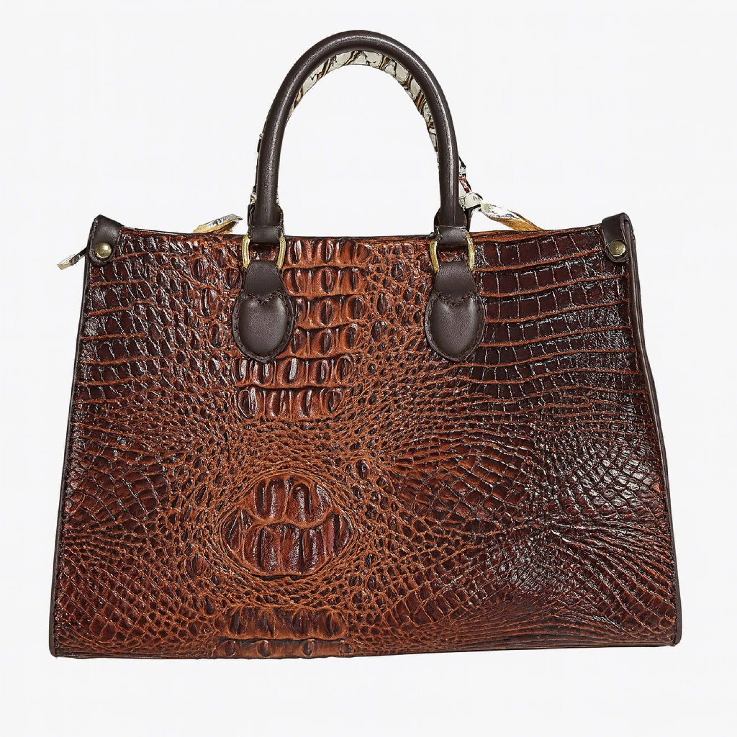 Elevate your style with this glossy croc- Embrossed handbag with silk scarf.It features double top handles, a detachable shoulder strap, and a top zip closure. The interior is roomy and includes a zippered pocket for organization. Perfect for everyday use!. Available in different Colors. I can deliver within Edmonton for a token.