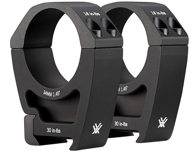 These are a brand new pair of Vortex Precision Matched Rings, designed for a 34mm scope tube and a 1.45" height. These Vortex Pro Series Rings position the center of the riflescope tube at a height of 1.45 inches from the base. The finishing touch to your rifle and optic combination. Pro Series rings combine rock-solid reliability and strength with high quality machining to ensure ultimate accuracy and consistency. Streamlined, lightweight and durable, these rings use four T-25 Torx-style socket cap screws for secure mounting. Fits Weaver and Picatinny Rails | Weight (Per Ring): 2.67 ounces * **Brand:** Vortex * **Type:** Precision Matched Rings * **Scope Tube Diameter:** 34 mm * **Material: Aluminium * **Height:** 1.45 inches If the ad is up, then they're available! I am unable to deliver. Get ready to enhance your shooting experience with these reliable rings! Asking $130 OBO