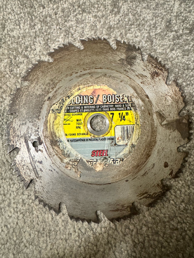 Selling a set of used circular saw blades 7 1/4 inches. These blades have been previously used but still have life left in them for various cutting projects. * Size 7 1/4” * Suitable for different cutting applications. One is 40 teeth Carbide. These saw blades may be used, but my ad is not! If you see this listing, the saw blades are available for purchase. Asking $5 each all for $20 obo.