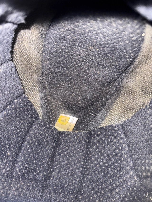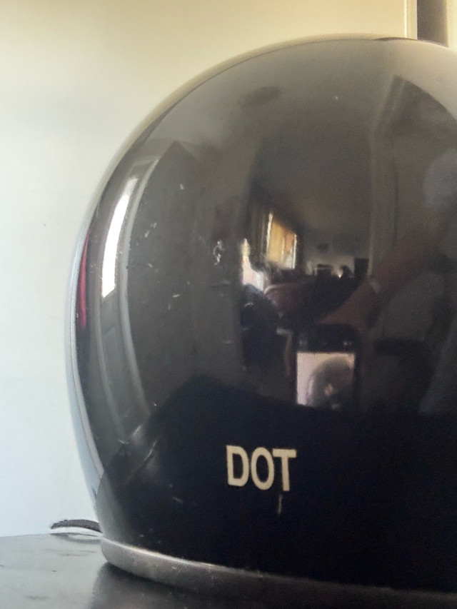 This is a CKX black motorcycle helmet, size large, with a classic design and DOT certification. It's in good condition, perfect for a retro look on your rides! There are some scratches on the visor. Unfortunately, I don't have any other specs to share, but it's ready to protect your head while you cruise down the road. Asking $40 obo