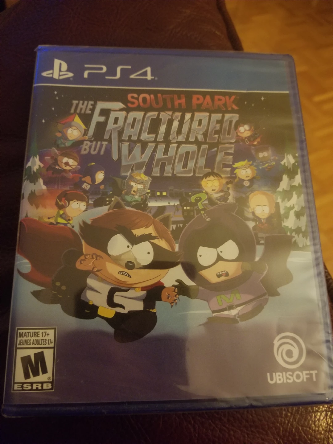 Selling South Park: The Fractured But Whole for the PS4! It's rated Mature 17+ by the ESRB. Get ready for some hilarious superhero adventures with the South Park crew!