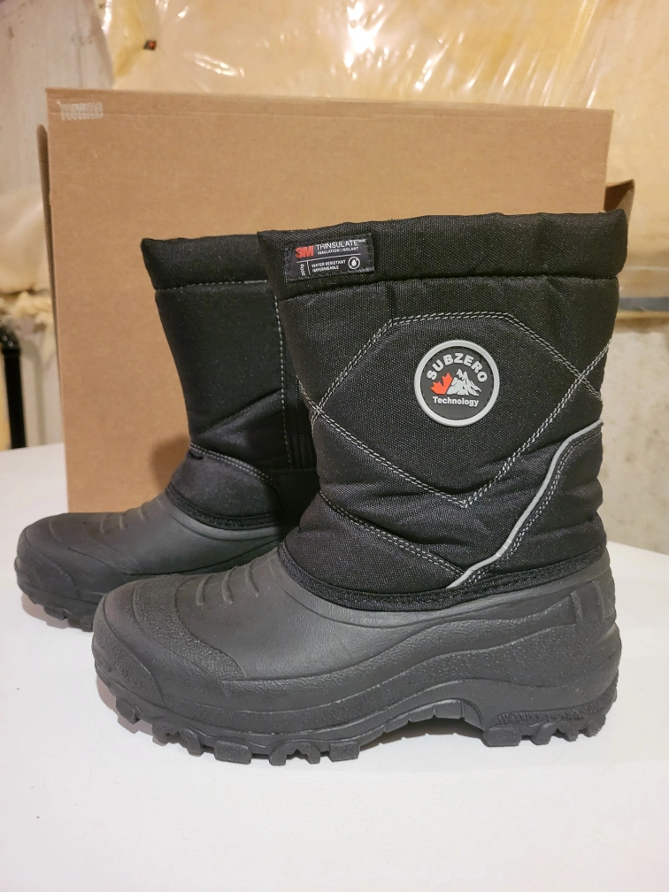 Keep your feet warm this winter with these Subzero Technology winter boots! They are black and feature 3M Thinsulate insulation for extra warmth and water resistance. Size 8 men's/boys .