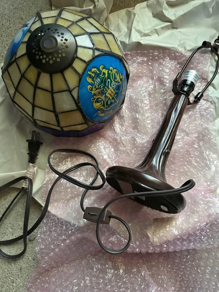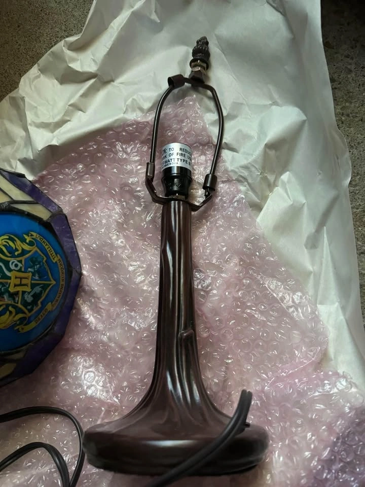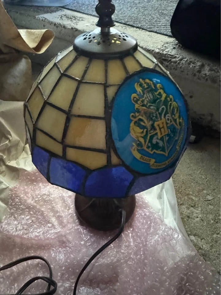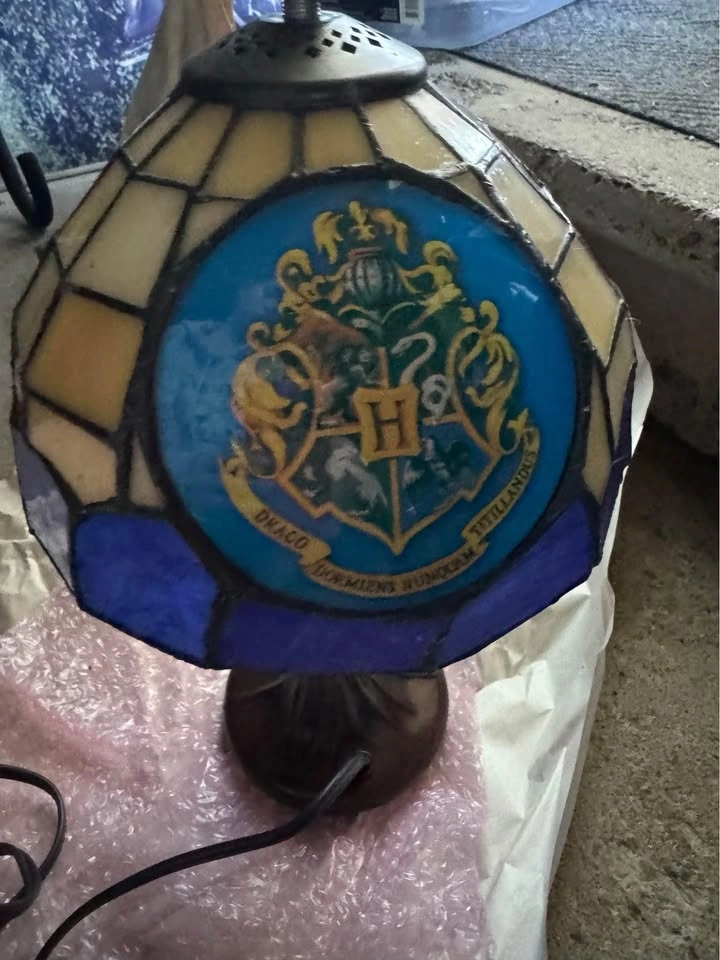 26Harry Potter rare Tiffany style table lamp. Stain glass effect top, tree base.