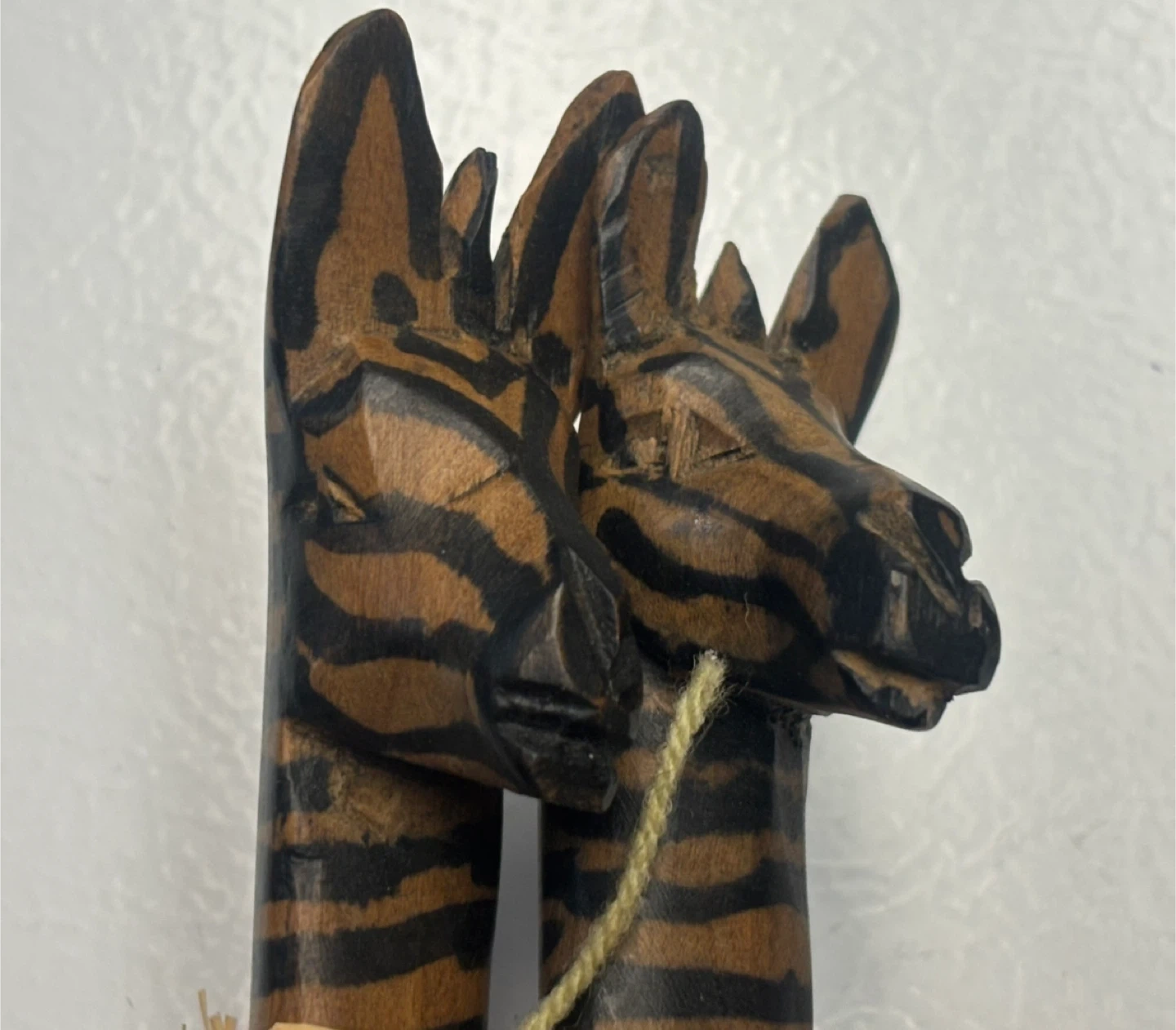 60These are fun wooden salad servers! They have zebra heads at the top and are tied together with a piece of raffia. They would be a great addition to any kitchen!