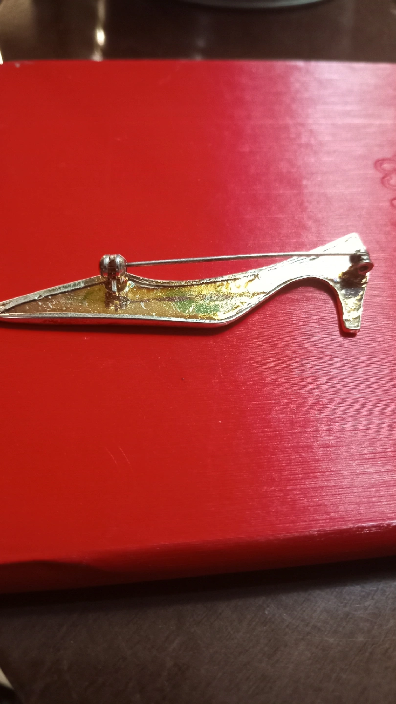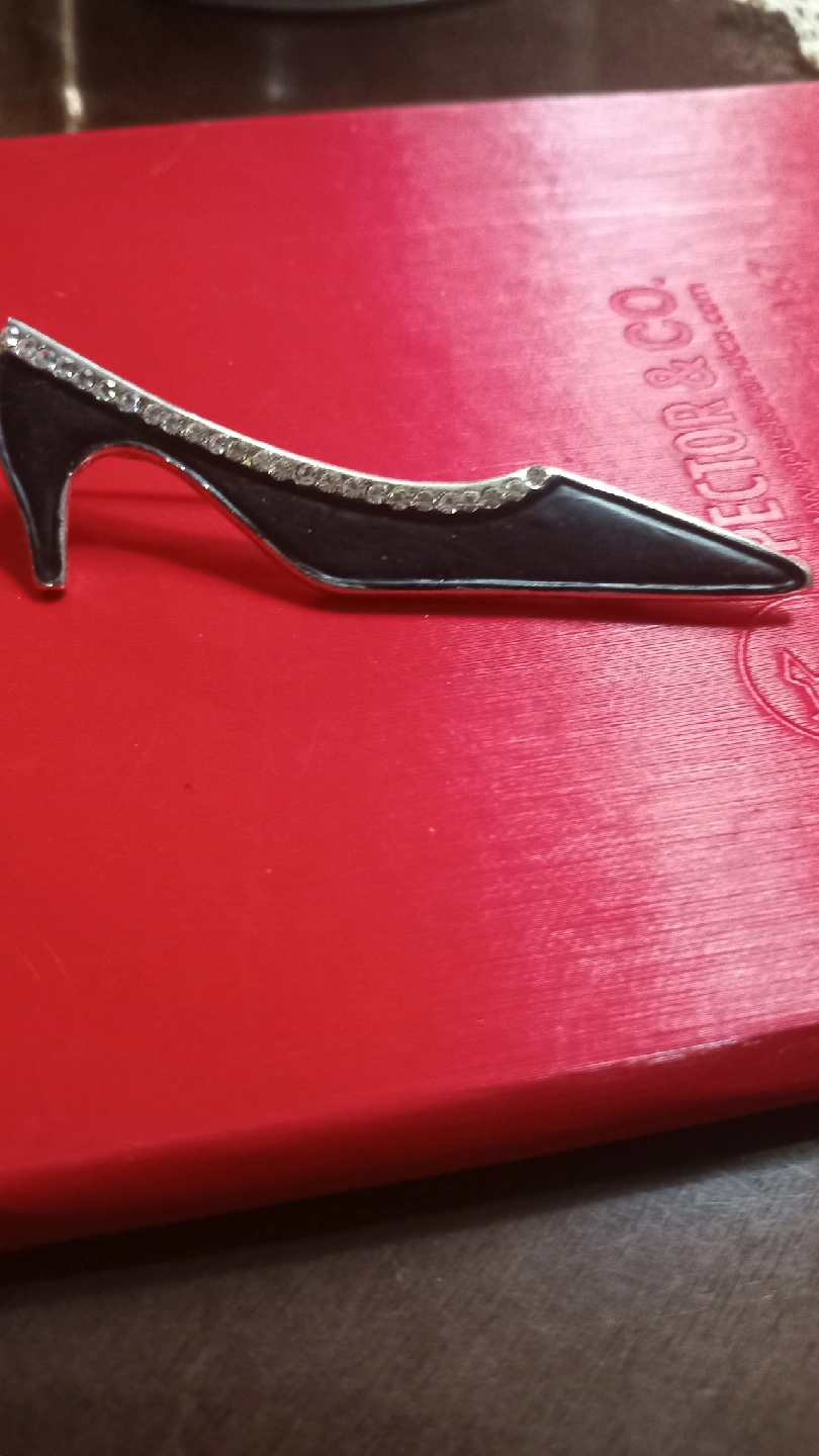 35Here's a cute shoe brooch! It's black with some sparkly accents. Perfect for adding a little flair to your outfit