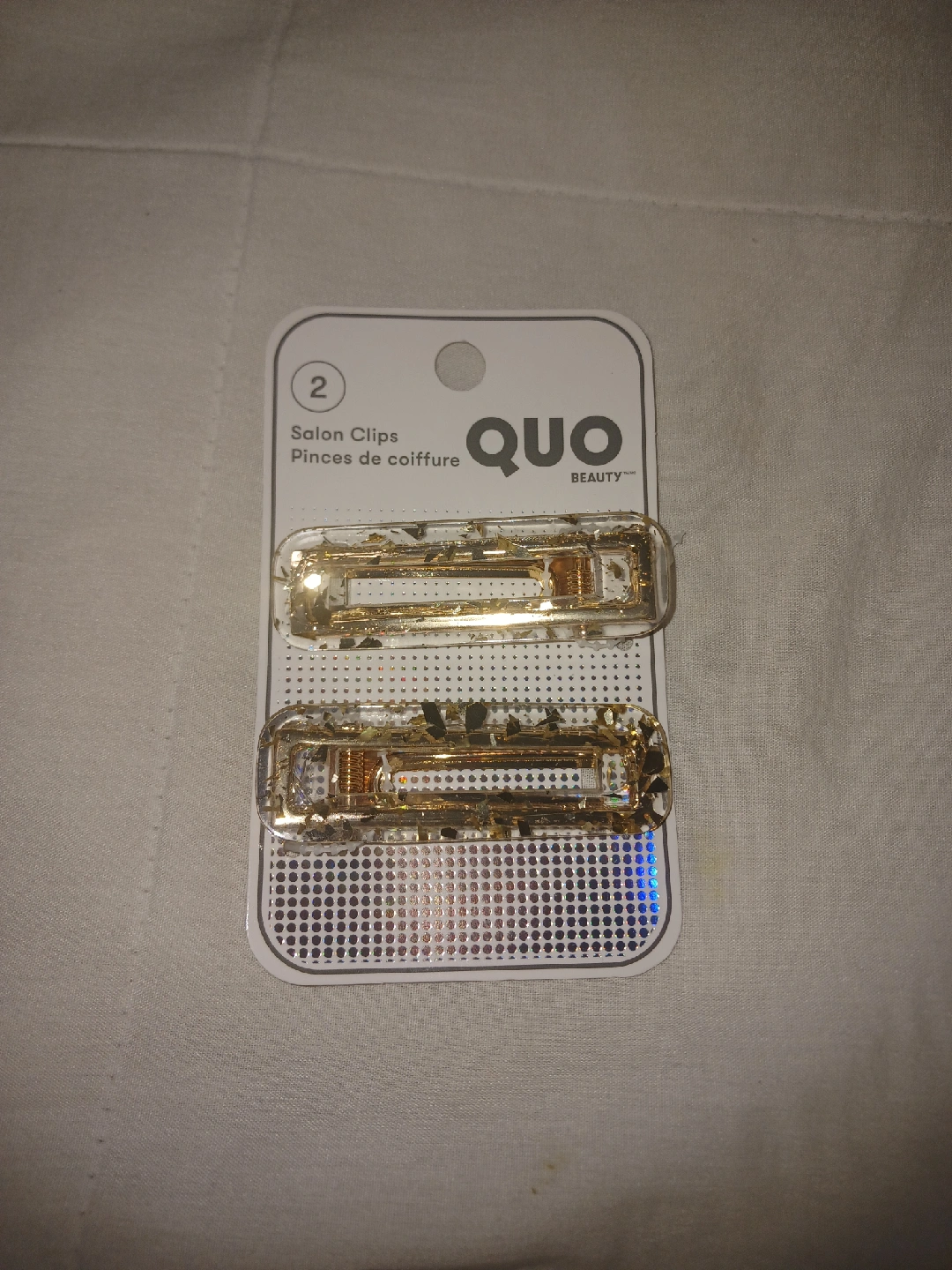 31Selling a set of two salon clips from QUO Beauty. They have a clear base with gold flakes inside, super cute for adding a little sparkle to your hair!