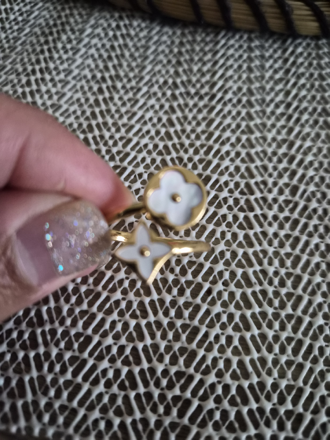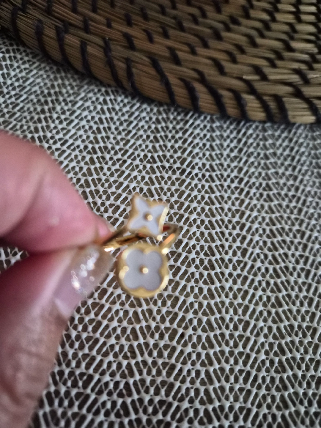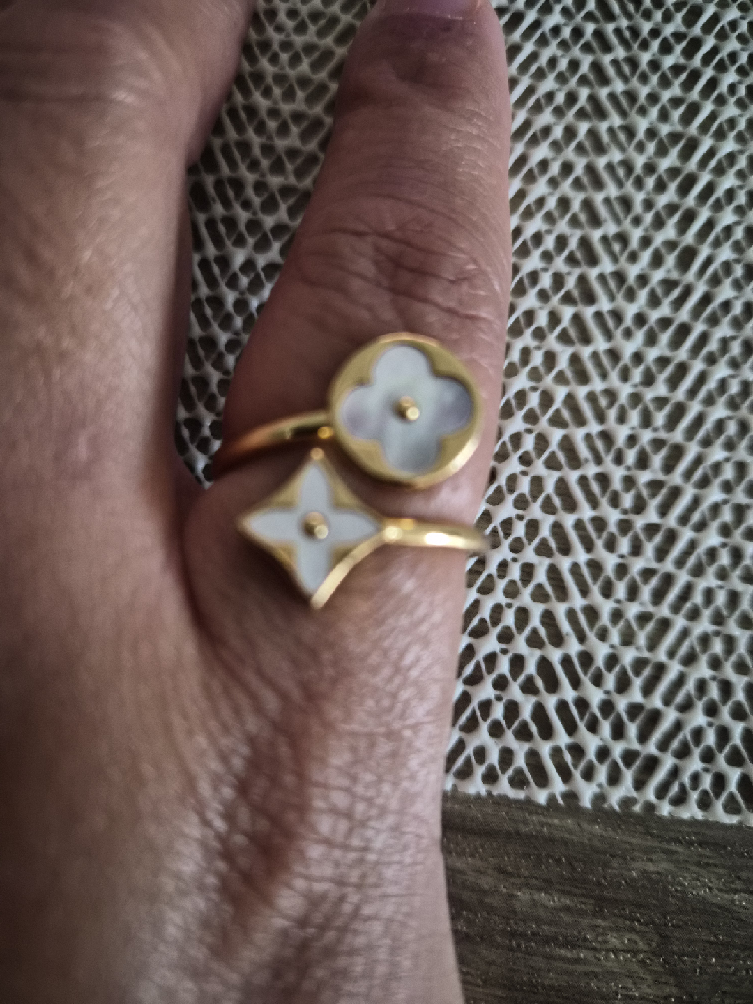 Selling a cute Blossom ring! It features the iconic flower and star design. Perfect for adding a touch of luxury to any outfit. a little tarnishing at the back
