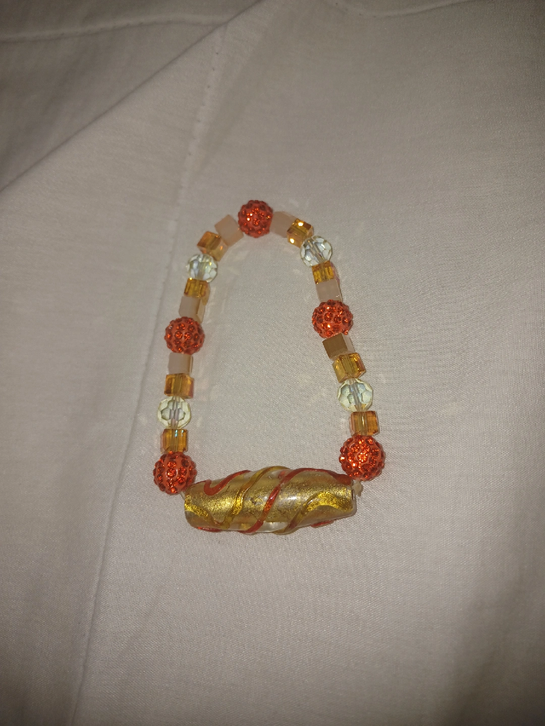 31Selling a cute orange beaded bracelet! It has a gold-coloured accent bead in the centre and would look great with any outfit