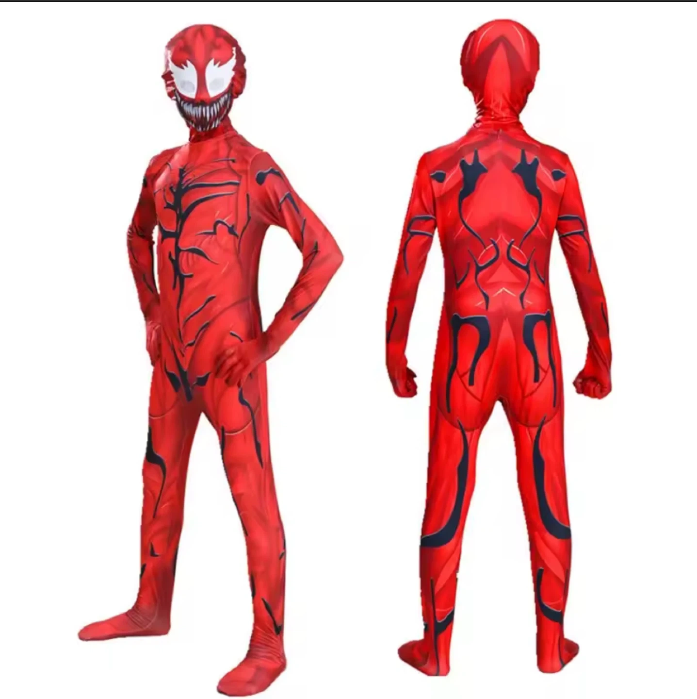 10Size 130 cm New, my child only tried it on ones. Carnage costume in red and black. Perfect for Halloween or dress-up! Has a hood to complete the look. Great condition!