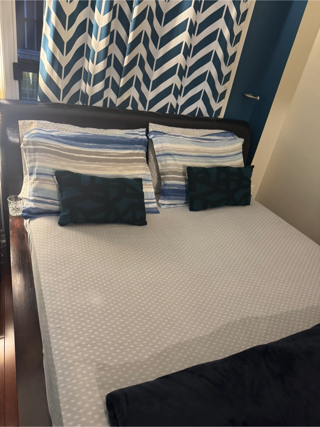 68Selling a leather bed frame with mattress a matching nightstand. The set is in good condition and features a sleek, modern design. The leather nightstand has two drawers for convenient storage. Perfect for adding a touch of style to your bedroom!