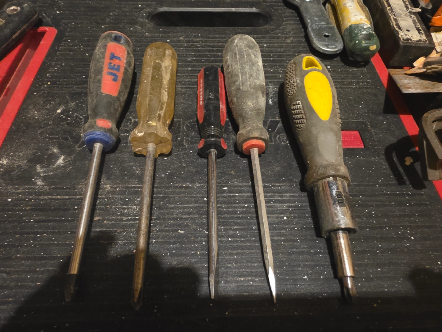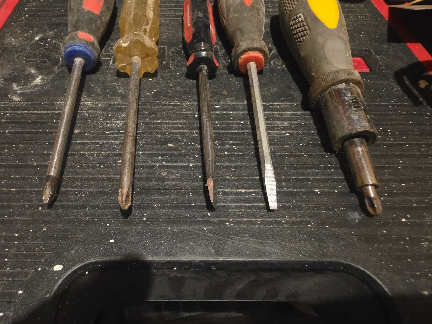 59Selling a set of 5 used screwdrivers. They're in fair condition and ready for a new home. Includes various sizes and head types for different tasks. Perfect for DIY projects or general repairs!