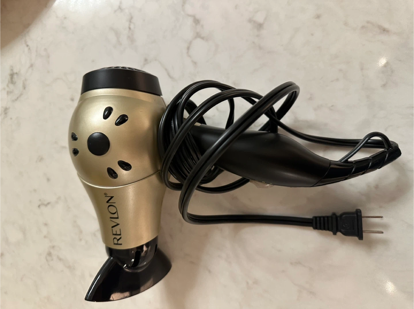 Selling a Revlon Bitension compact hair dryer! It's perfect for travel because it's lightweight and easy to pack. It's 1875 watts, so it's powerful enough to dry your hair quickly. The box is included!