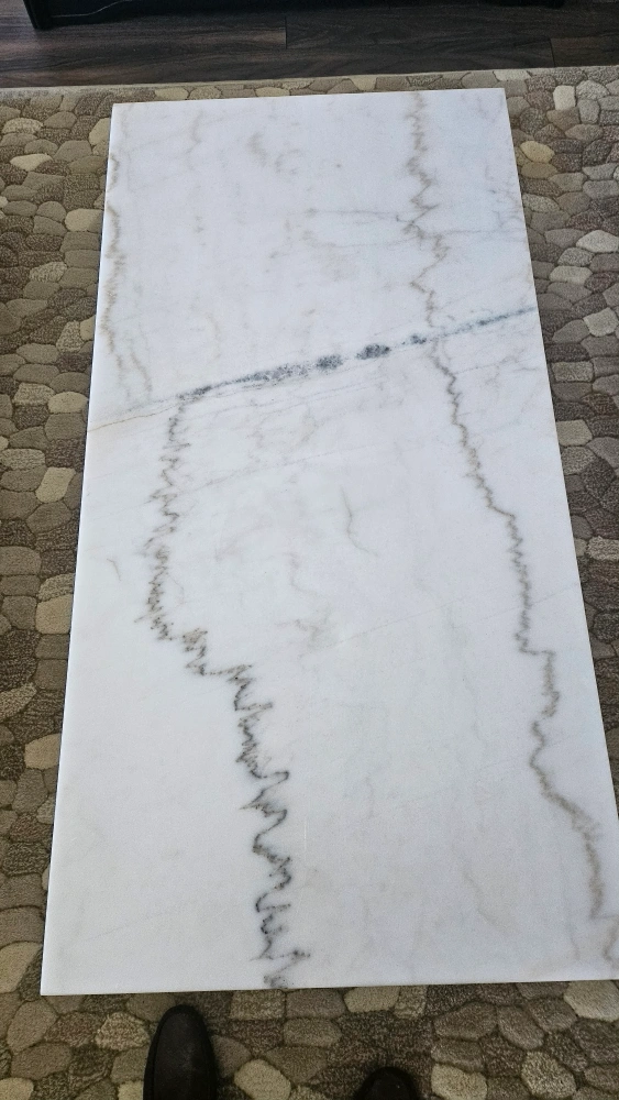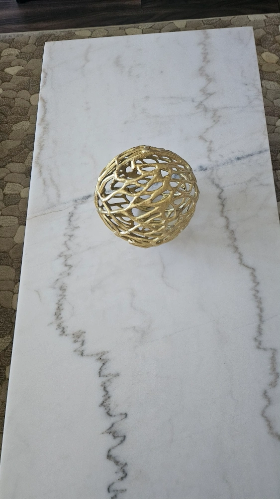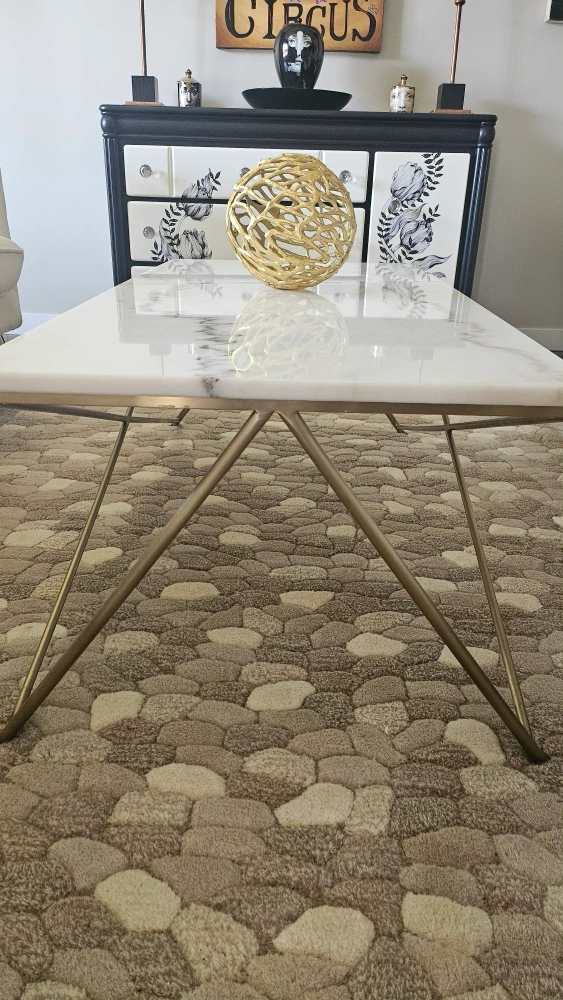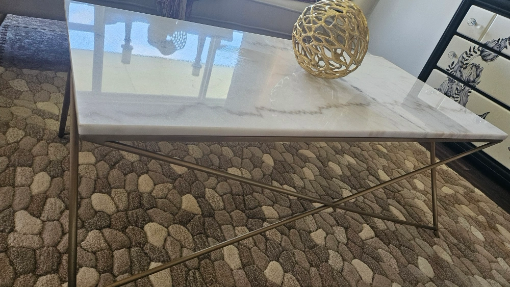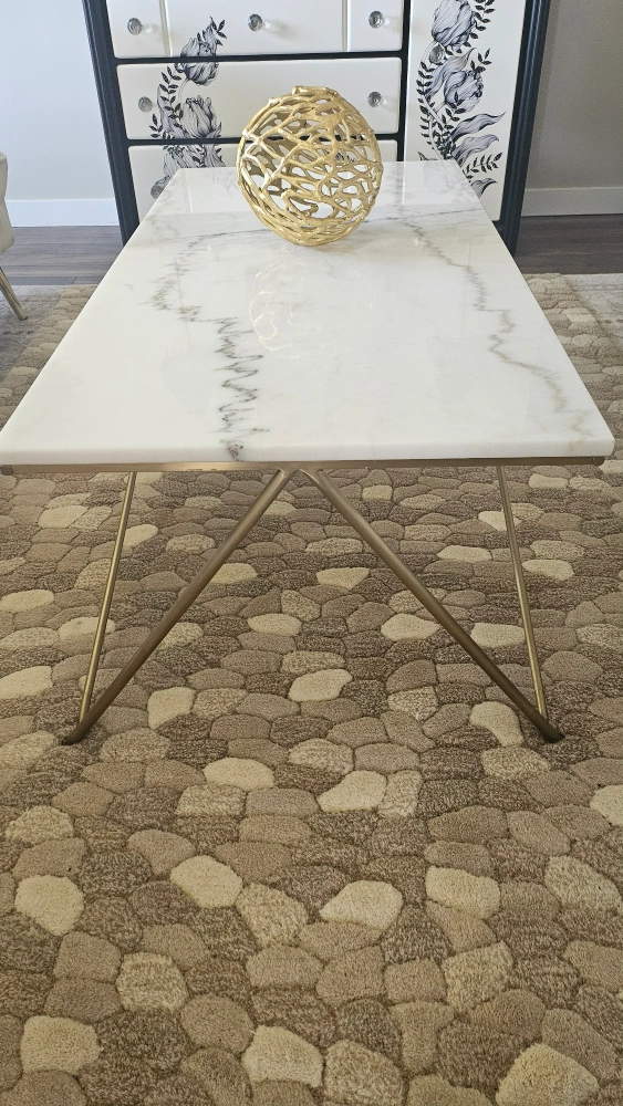 10Selling a beautiful marble coffee table! It features a sleek white marble top with unique grey veining. The gold legs add a touch of elegance and modern style to any living space. It's in great condition and ready to be the centrepiece of your living room