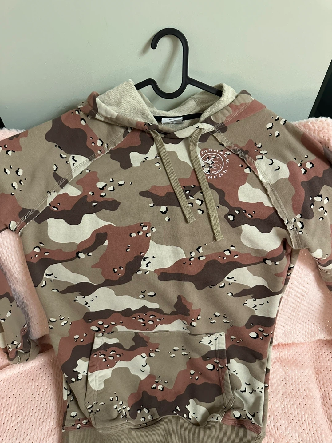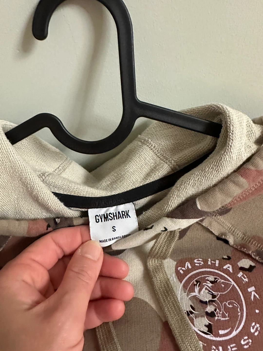 Selling a Gymshark camo hoodie in size small! It's in great condition and perfect for workouts or casual wear. The camo pattern is really unique and stylish. Feel free to reach out if you have any questions!