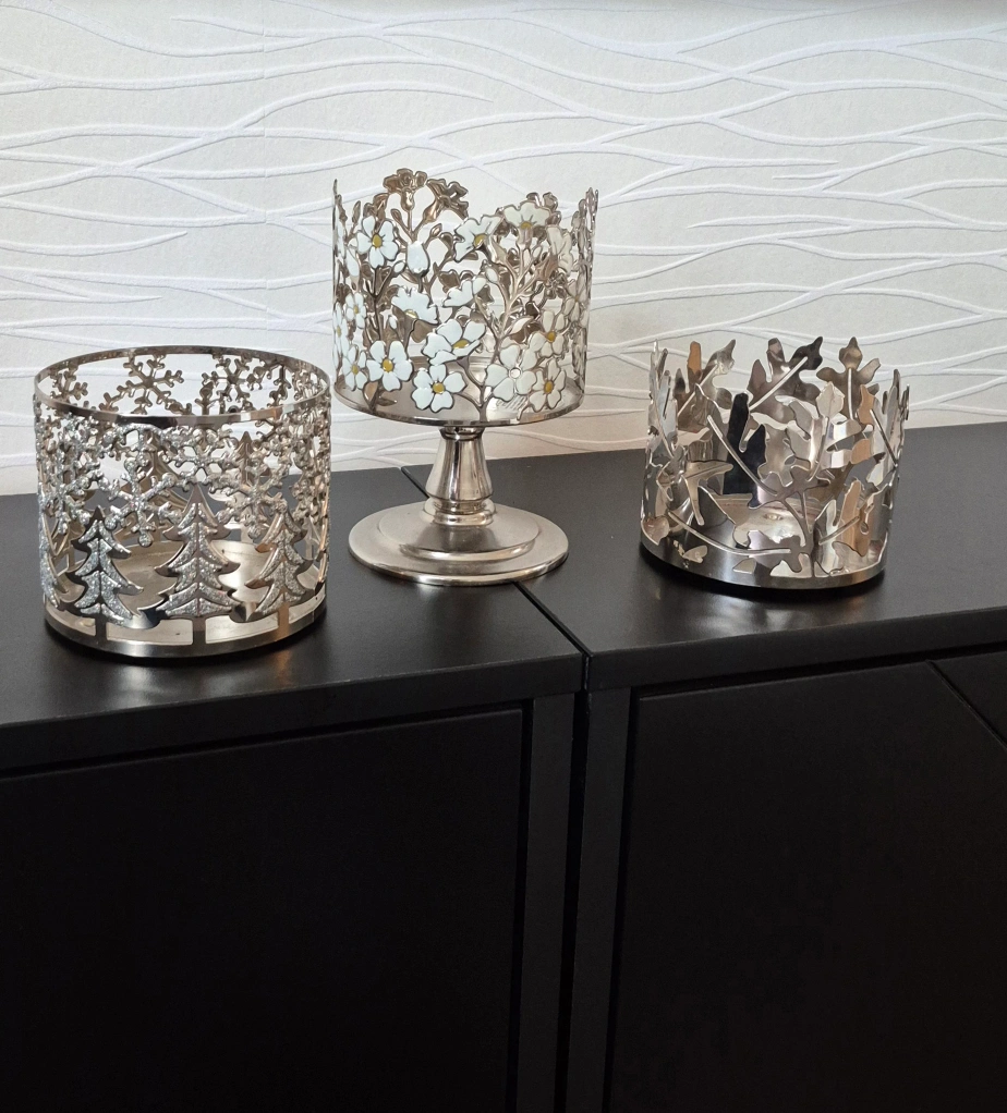 15Seasonal candle holders for 3-wick candles. Summer, Fall, Christmas. Pick up Milton. $15 each or $40 for the lot.