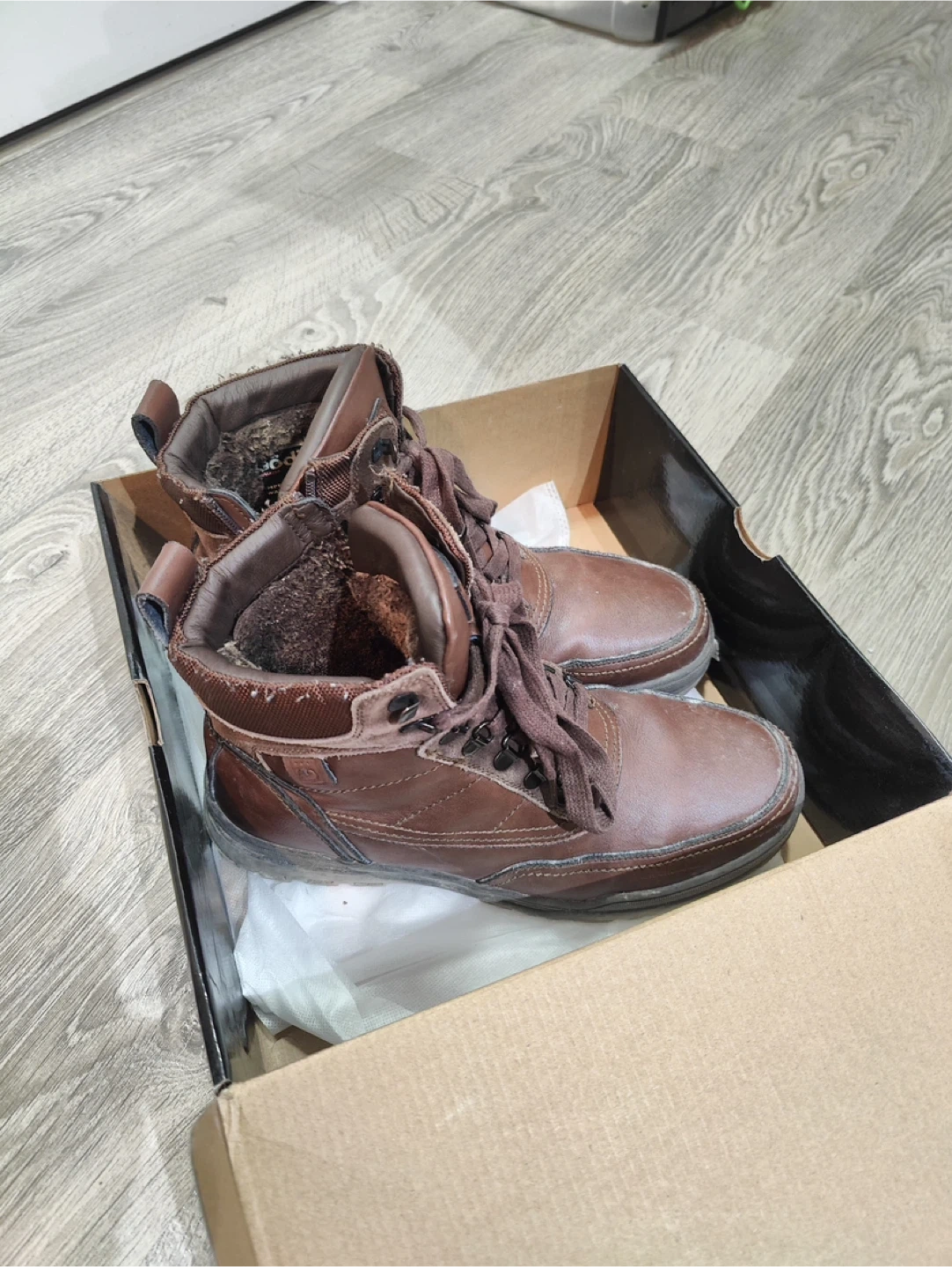 Selling a pair of men's brown leather winter boots in size 12 (I am generally size 11 but these have a thick faux fur and needed to choose one size higher). They come with the original box. These boots are perfect for the winter (warm and cozy) and are in good condition. Worn only few times