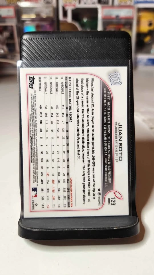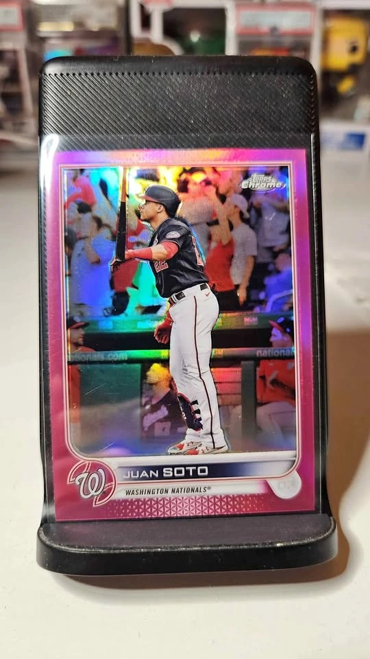 652022 Topps Chrome featuring Juan Soto of the Washington Nationals. Beautiful Pink Refractor parallel — sharp color and Chrome shine make this one stand out! Perfect for Soto fans or refractor collectors. Condition: Near Mint / Mint. Set: 2022 Topps Chrome. Parallel: Pink Refractor (#129). Item Located West Hamilton Mountain near Mohawk Rd and Rice Ave