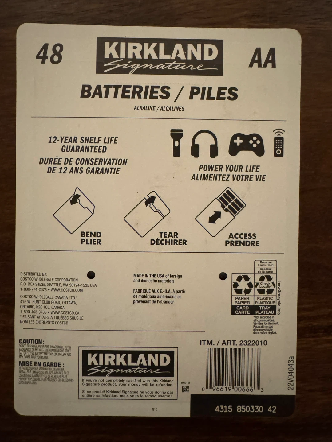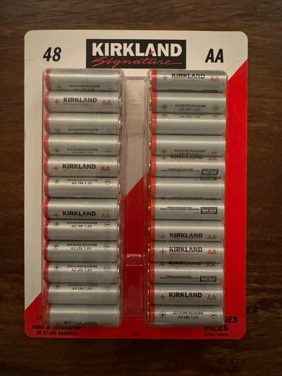 277Selling a pack of 48 Kirkland Signature AA alkaline batteries. They have a 12-year shelf life, so you'll be powered up for a long time!