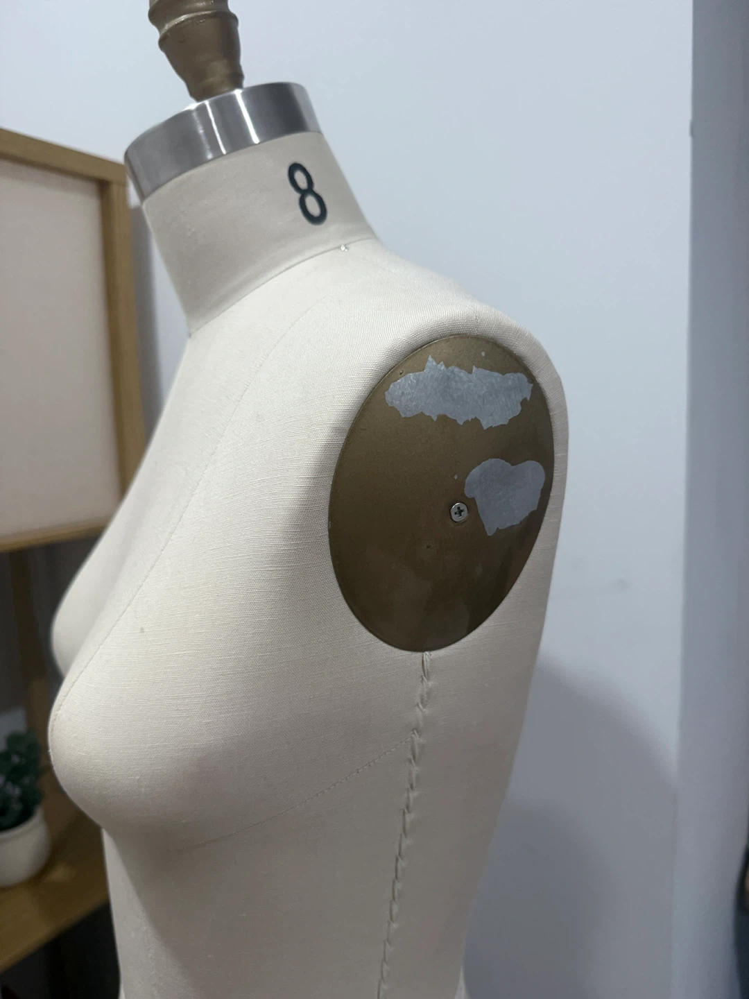 Selling a dress form mannequin, size 8. It features a collapsible shoulder design and an adjustable height stand. Great for sewing or displaying clothes. Pickup in Elmhurst, NY. Elevator access building.