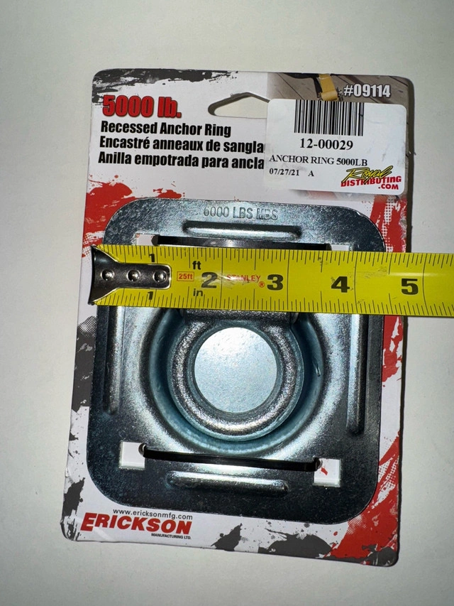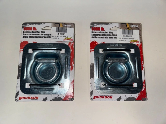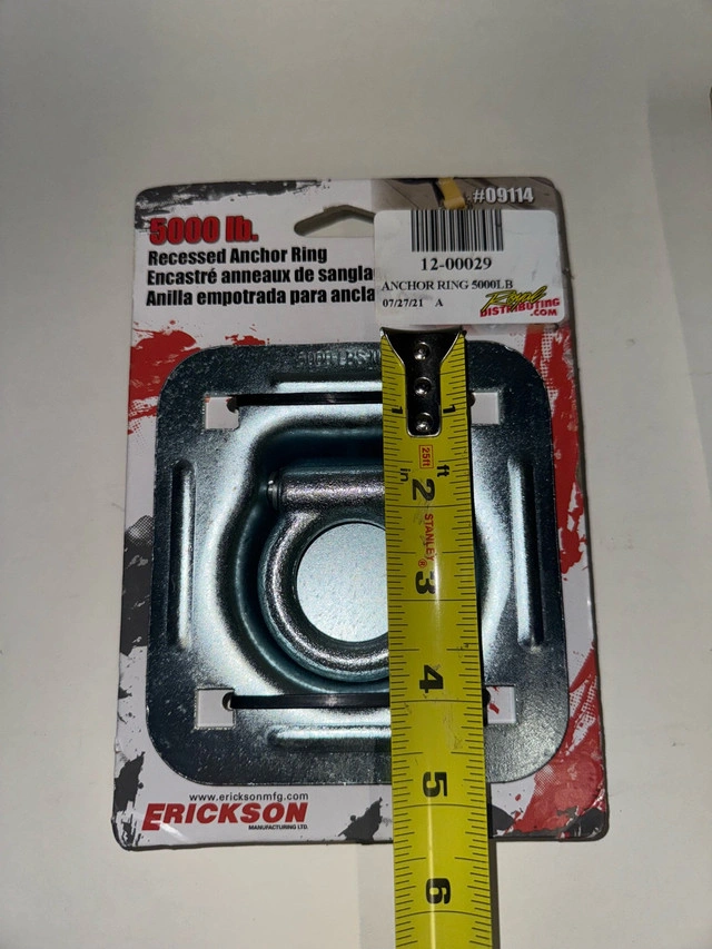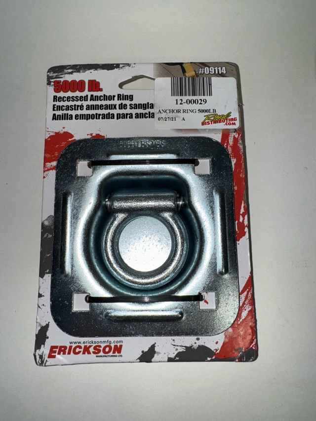 10Erickson 5000 lb. Recessed Anchor Ring. Brand: Erickson Manufacturing Capacity: 5,000 lbs. Type: Recessed D-ring tie-down anchor Use: To create a tie-down point for securing cargo in a truck, trailer, or van. 2 available. For Sale By: Owner