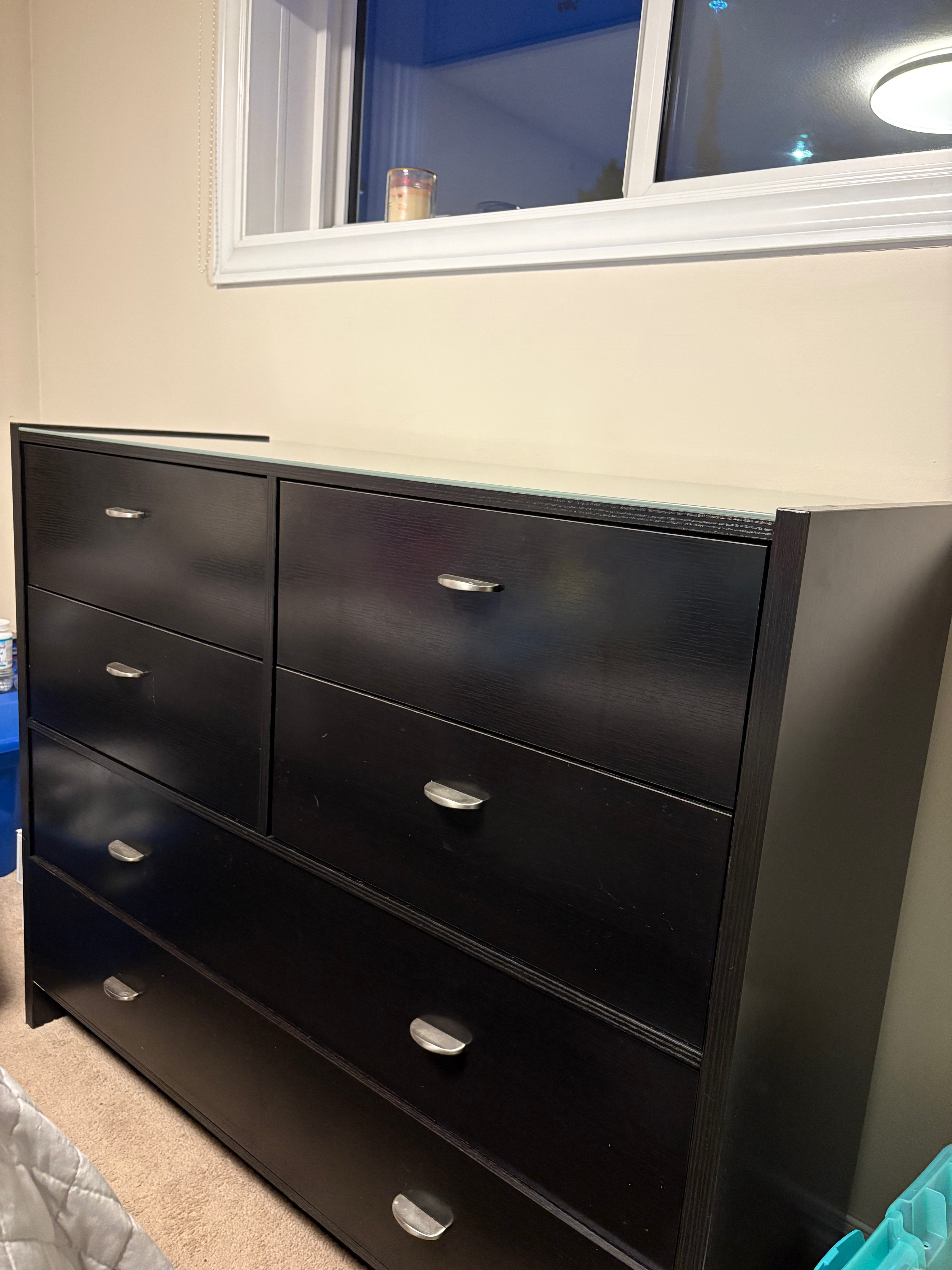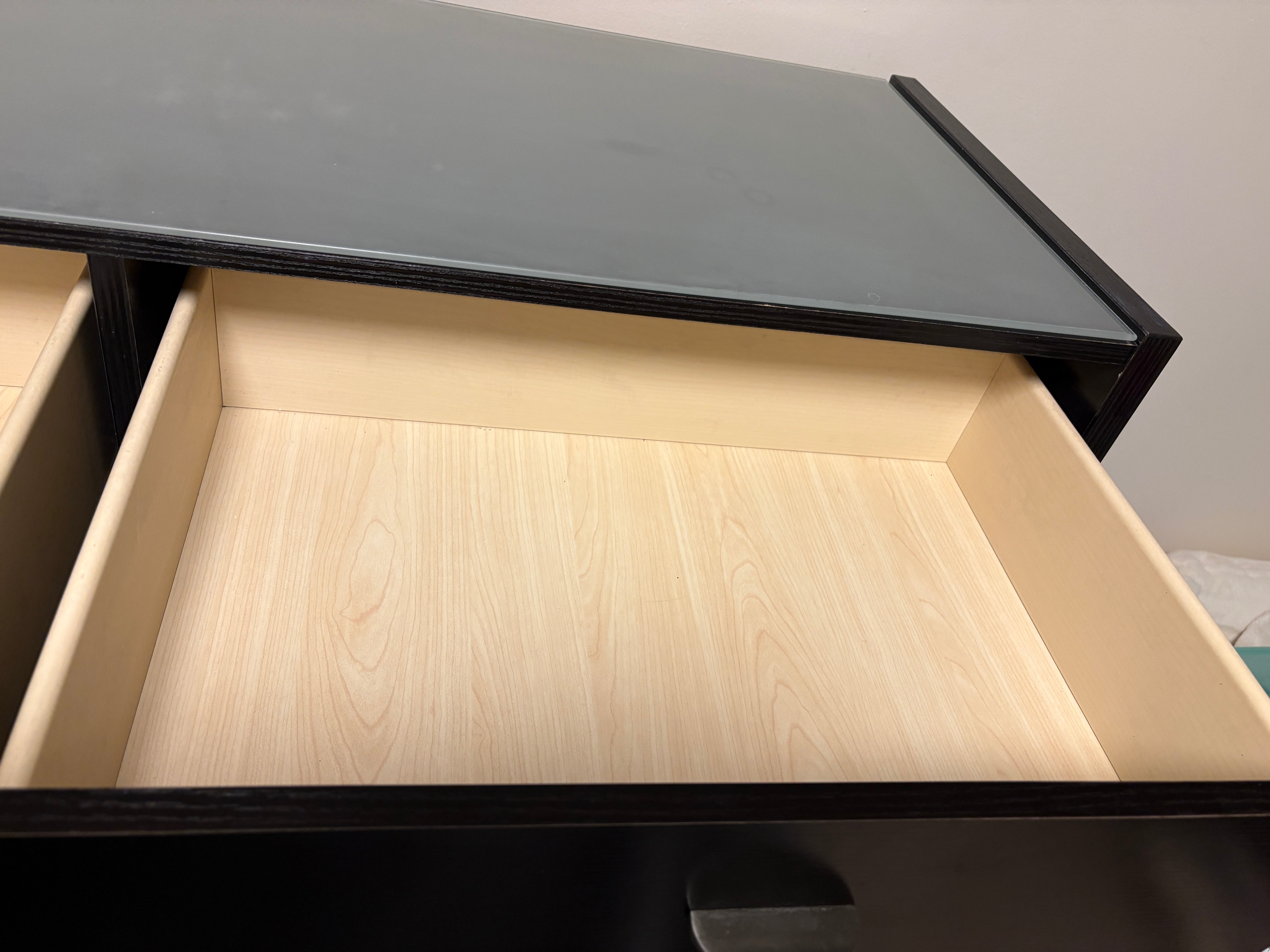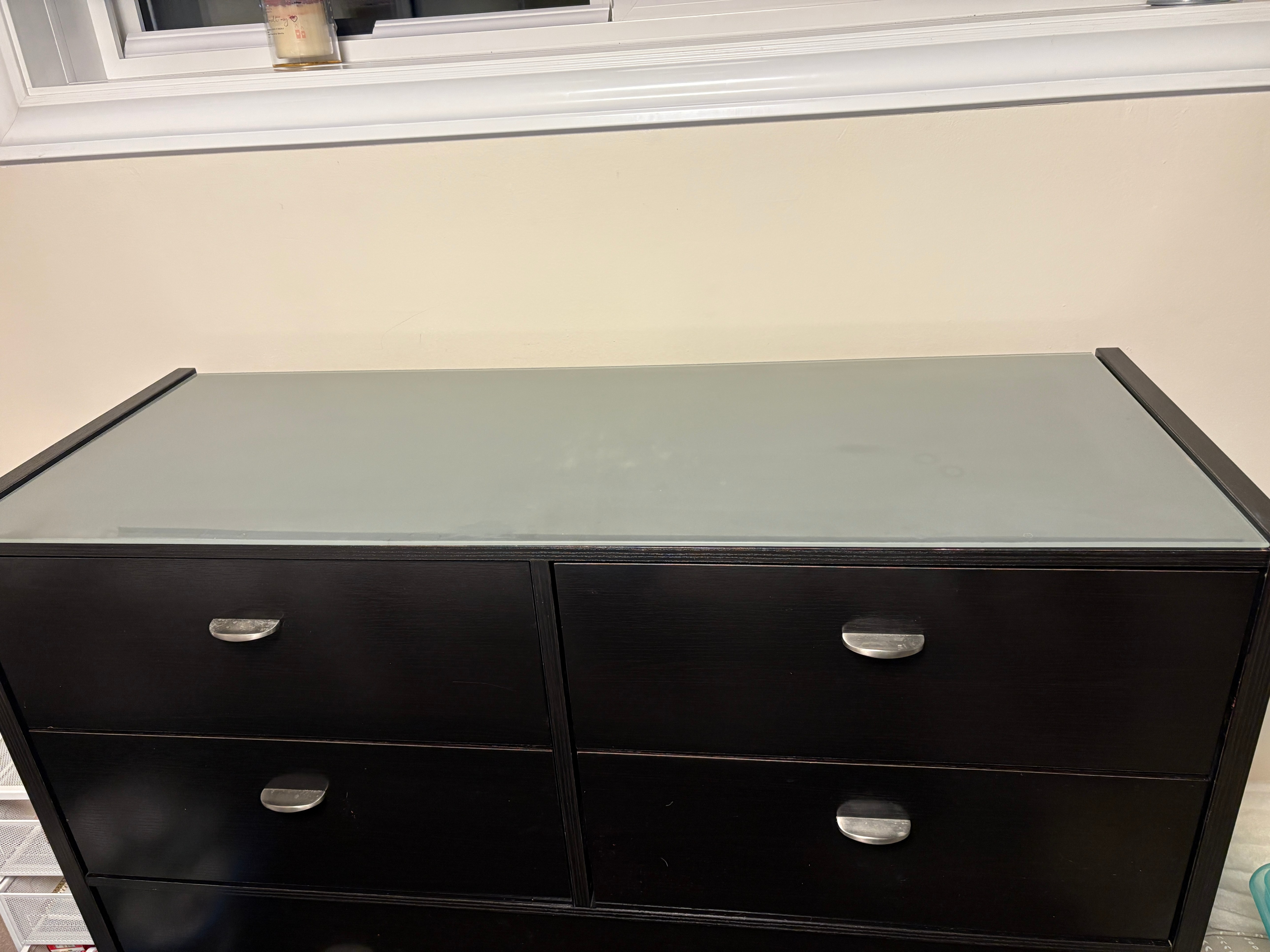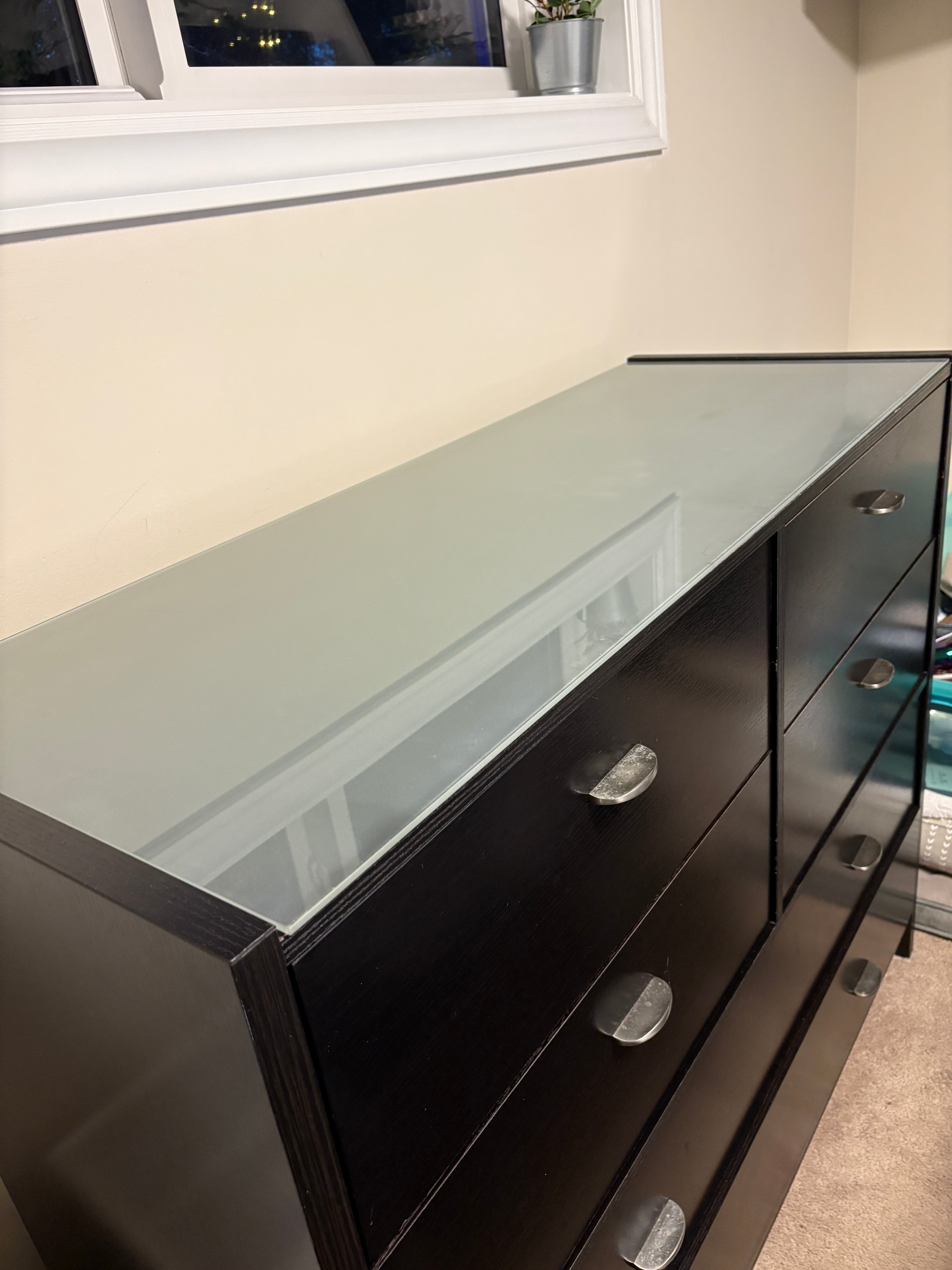 Large Black Dresser with Frosted Glass Top
