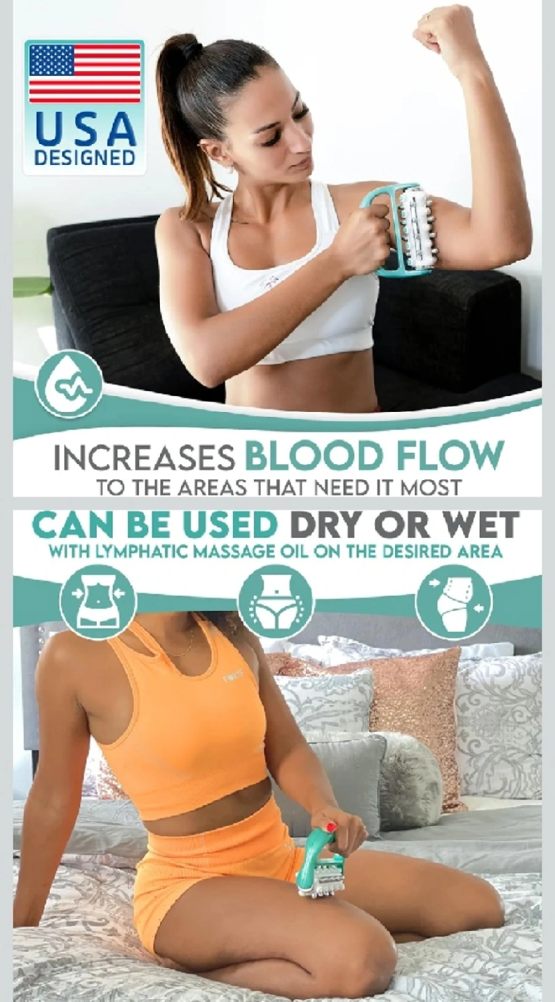 This massager is designed to provide a gentle yet effective massage that targets specific areas, helping to relieve soreness & tension, reduce cellulite, and improve overall well-being. EASY to USE - Dedicate 5 minutes twice a day to rolling on targeted areas and experience transformative outcomes! Use it dry, over a wet cloth, or with cellulite-removing cream for an optimal lymphatic massage.