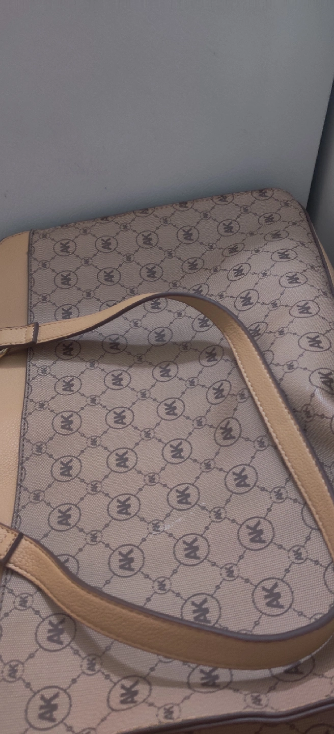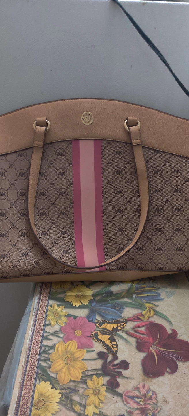 1000+Selling an Anne Klein tote bag! It's in great condition and features a stylish design with the 'AK' logo pattern and pink stripes. Perfect for everyday use!Used only a few times. Price is firm. Dont contact me to negotiate.
