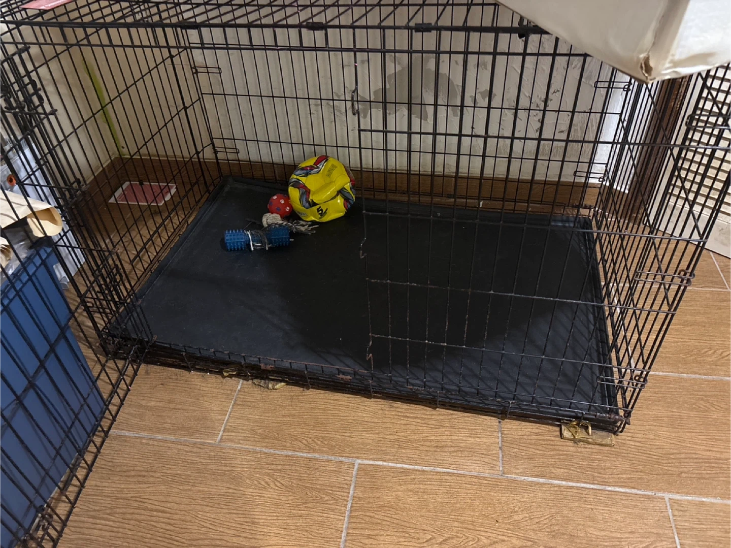 Selling a dog crate in good condition. It comes with a black tray at the bottom. It's perfect for house training or providing a safe space for your furry friend for bigger breeds