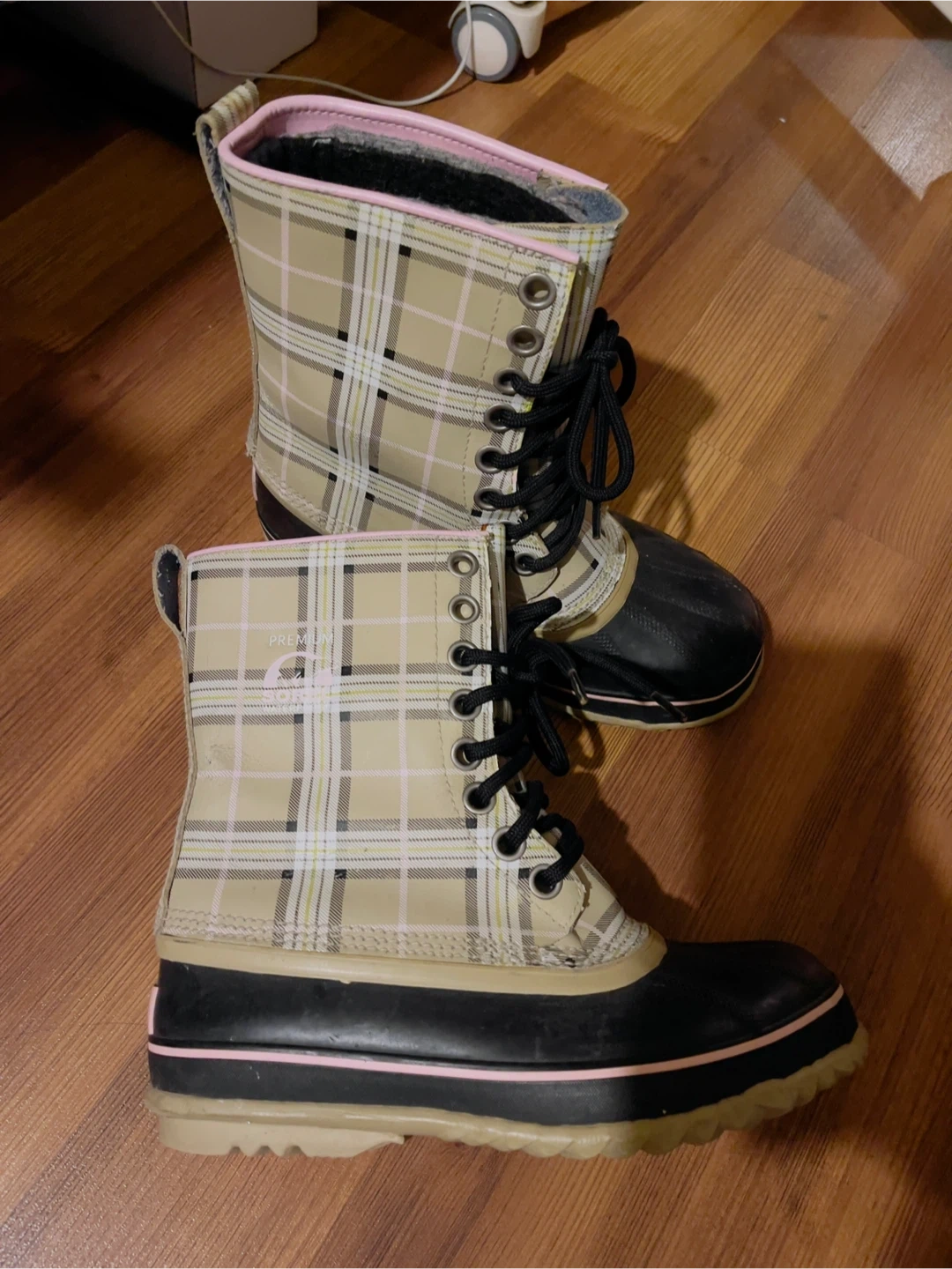 76Sorel 1964 Premium Plaid Winter Boots - Women's Size 6 Selling a pair of Sorel 1964 Premium women's winter boots in a plaid pattern. They're a size 6 US. These boots are waterproof and ready to keep your feet warm and dry this winter season!