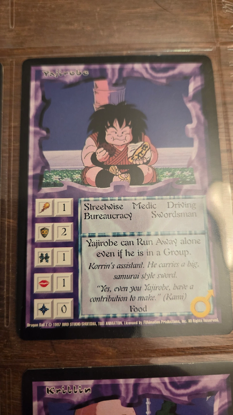 10Selling a Dragon Ball Z trading card featuring Yajirobe. The card has some interesting stats and details about the character. It mentions that Yajirobe can run away alone and is Korrin's assistant. A fun collectible for any Dragon Ball Z fan!