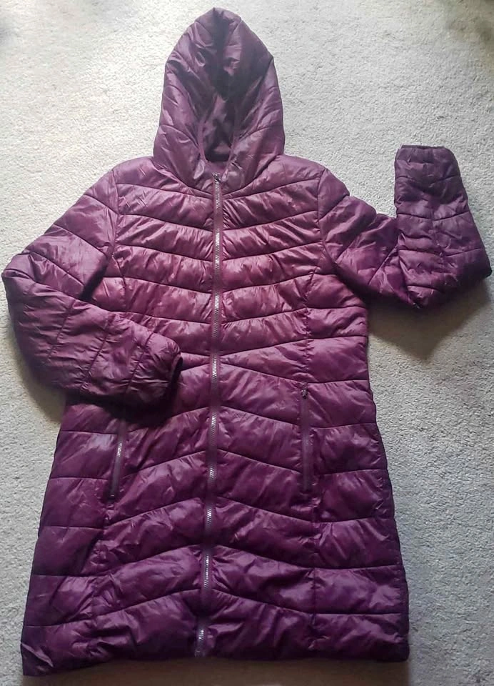 895Purple puffed rain jacket with hood. Chest 44 in. Length 35 in. Pick up at 40 Lavery Trail Scarborough M1C4T3 or 280 Donlands Avenue